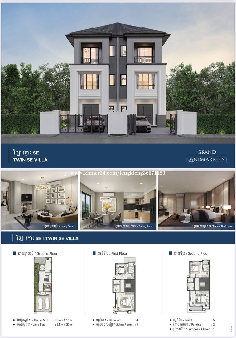 ទីតាំងល្អ ផ្ទះលេខ #59 Street G-05 ជិតក្លោងទ្វារធំ ផ្ទះថ្មី វីឡាភ្លោះ 𝐓𝐖 𝐒𝐄 លក់បន្ទាន់ #បង់មុនខ្ទង់ 3 មុឺនដុល្លារជាង ហេីយអាចបន្តជាមួយបុរីបានមួយខែ 1 ពាន់ដុល្លារជាង អត់ការប្រាក់ 30 ខែ 📍នៅបុរីជីបម៉ុង គំរោង Grand LandMark 271, 371 ជិតផ្សារប៉េសេ ផ្លូវ 60M និង Aeon 3- #ផ្ទះកំពុងបុកគ្រឹះសាងសង់ 🏷️ តម្លៃពេញ $255000$ នៅចរចាបានខ្លះទៀត 👉 ទំហំដី : 6.5m x 20m 👉 ទំហំផ្ទះ : 5m x 12.5m 👉 បន្ទប់គេង : 4 - បន្ទប់ទឹក: 5 👉 កាត់ឈ្មោះត្រឹមបុរី 🏘️ ទីតាំងគំរោង : https://maps.app.goo.gl/tEeVzZ1vRBa78YBR7?g_st=ipc Tel: 010505xxxClick To Call 078505xxxClick To Call
