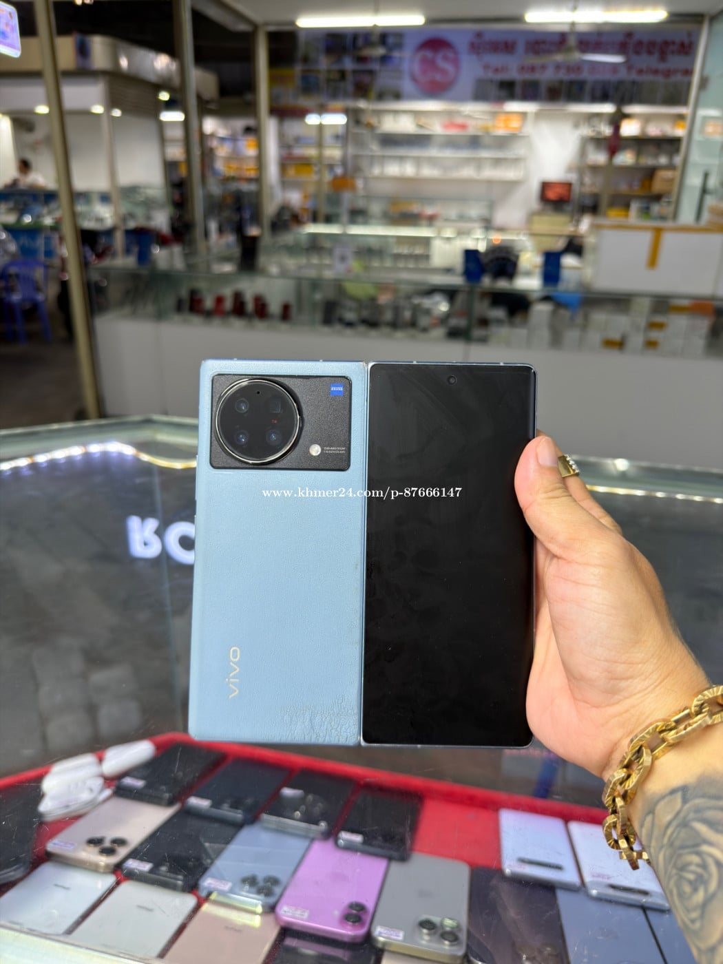 Vivo X Fold Blue CH Sim2 Ram12GB HD512GB Phone Condition 96% , ខូចអេក្រង់ក្នុង , ម៉ាស៊ីនសានុំហ្សីន
