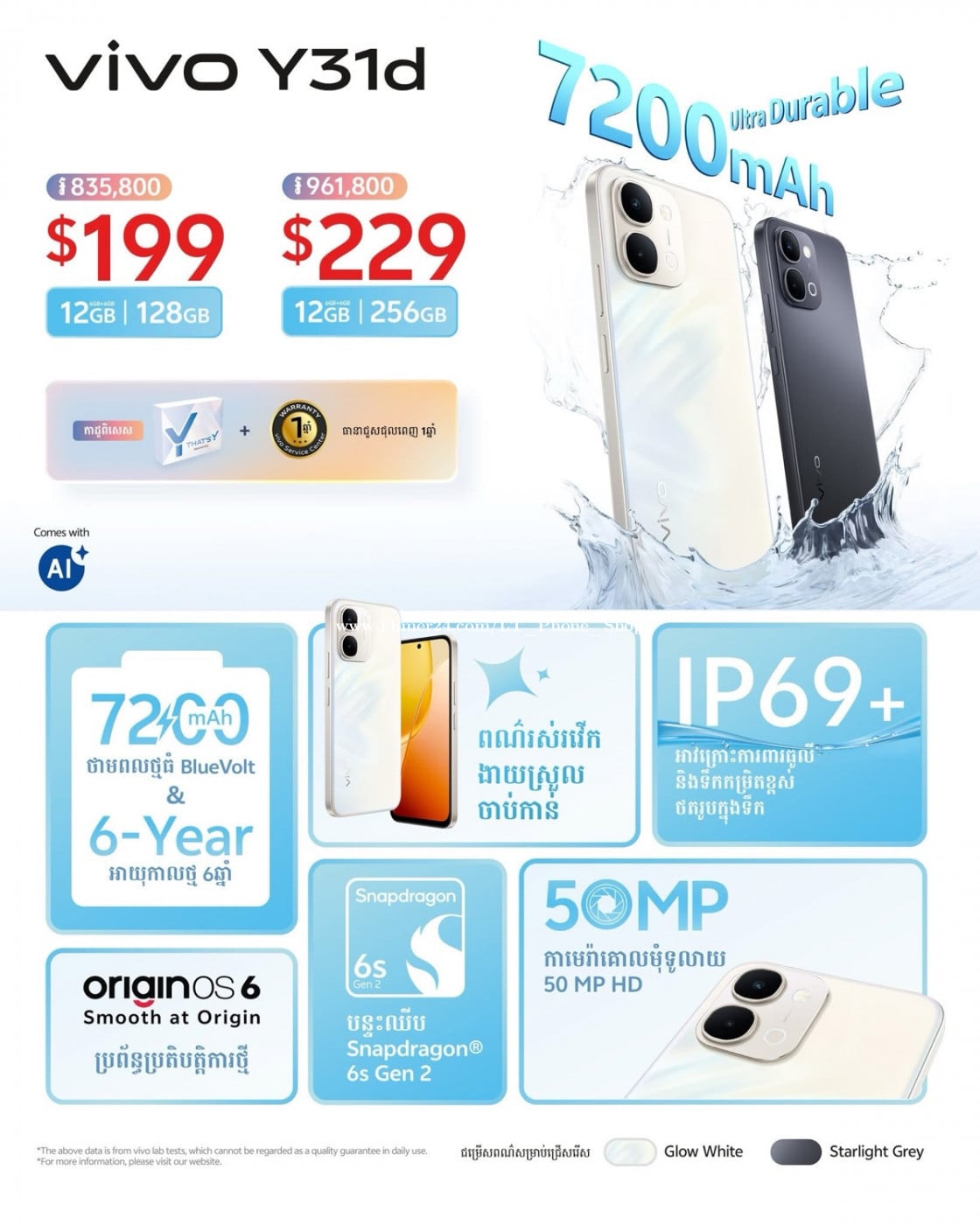 💎Vivo Y31d រូបរាងសង្ហា ហើយធន់មាំ ស្មាតហ្វូន vivo Y31d មានវិញ្ញាបនបត្រ SGS ធន់នឹងការធ្លាក់លំដាប់ផ្កាយ 5។ មកលើកនេះគឺបានភ្ជាប់ជាមួយនឹងប្រព័ន្ធប្រតិបត្តិការថ្មី OriginOS 6 ដែលផ្ដល់ភាពងាយរាល់ការប្រើប្រាស់ជាងមុន 👑Ram 6GB+6GB / Memory 128GB តំលៃ 199$ បញ្ចុះតំលៃនៅសល់ត្រឹម 185$ តែប៉ុណ្ណោះ 👑Ram 6GB+6GB / Memory 128GB តំលៃ 229$ បញ្ចុះតំលៃនៅសល់ត្រឹម 210$ តែប៉ុណ្ណោះ 🎉 ថ្មធំ 7200mAh ធន់មាំខ្លាំង ដែលលោកអ្នកអាចប្រើប្រាស់បានរហូតដល់លើស 3ថ្ងៃ 🎉 អាវក្រោះការពារធូលីនិងទឹកកម្រិត IP69+ 🎉 វិញ្ញាបនបត្រ SGS ធន់នឹងការធ្លាក់លំដាប់ផ្កាយ5 🎉 បន្ទះឈីប Snapdragon 6s Gen 2 🎉 និងជម្រើសតម្លៃ2ផងដែរ 🎉 ជាមួយ OriginOS 6 អេក្រង់ច្បាស់ ប្រតិបត្តិការរលូន និងការគ្រប់គ្រងឆ្លាតវៃ 🎉 ជម្រើសមាន2ពណ៌ : Glow White និង Starlight Grey 🏡 ហាងលក់ទូរស័ព្ទដៃទំនើប អិលធី 📲 ទំនាក់ទំនងលេខទូរស័ព្ទ: 016711xxxClick To Call (Telegram) / 099333xxxClick To Call / 0888884xxxClick To Call 📩 Telegram: https://t.me/LTPhoneShop 📬 Facebook Page: https://www.facebook.com/share/165XEwR2ZA/?mibextid=wwXIfr 🗺️ ផ្ទះលេខ139c, ផ្លូវលេខ143 កែងផ្លូវលេខ376, សង្កាត់បឹងកេងកង3, ខណ្ឌបឹងកេងកង, រាជធានីភ្នំពេញ 📍Google map: https://maps.app.goo.gl/phENGCSAT33SaM9r7?g_st=com.google.maps.preview.copy 🛵 មានសេវាដឹកជញ្ជូនគ្រប់ខេត្តក្រុងរាជធានី