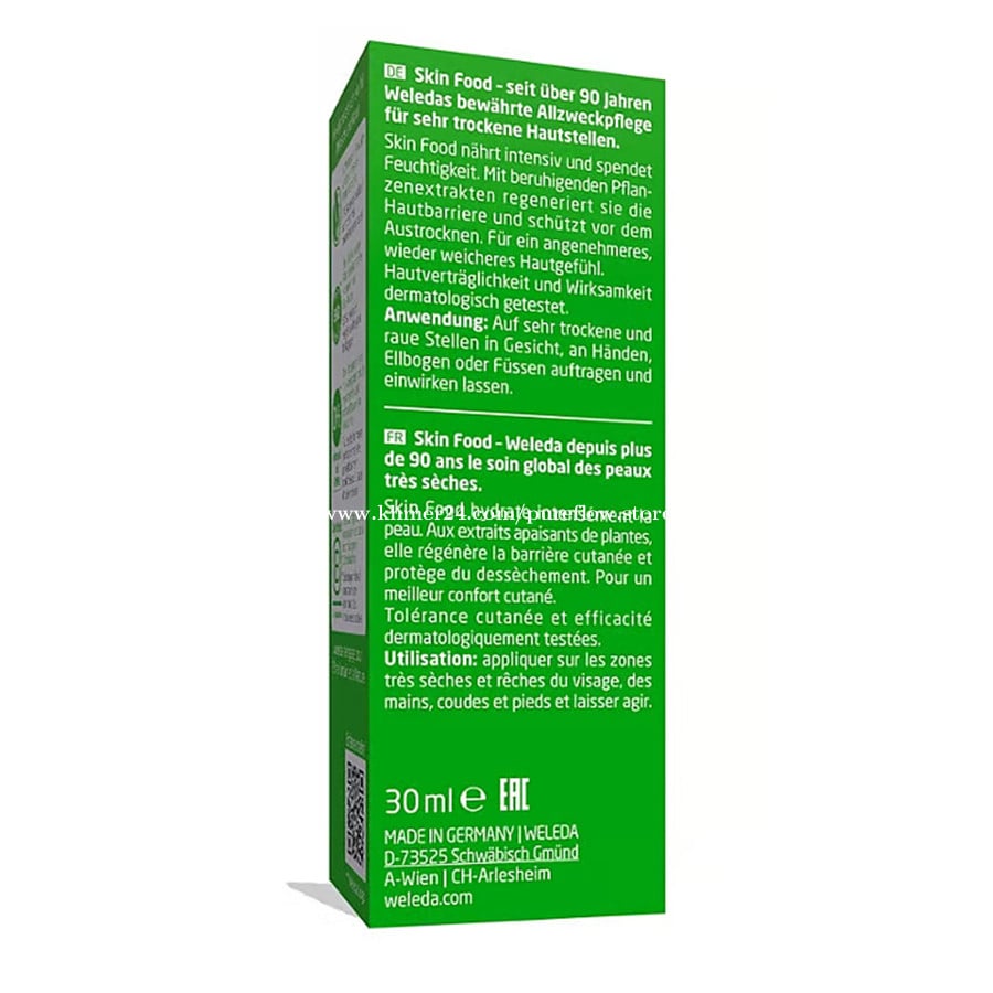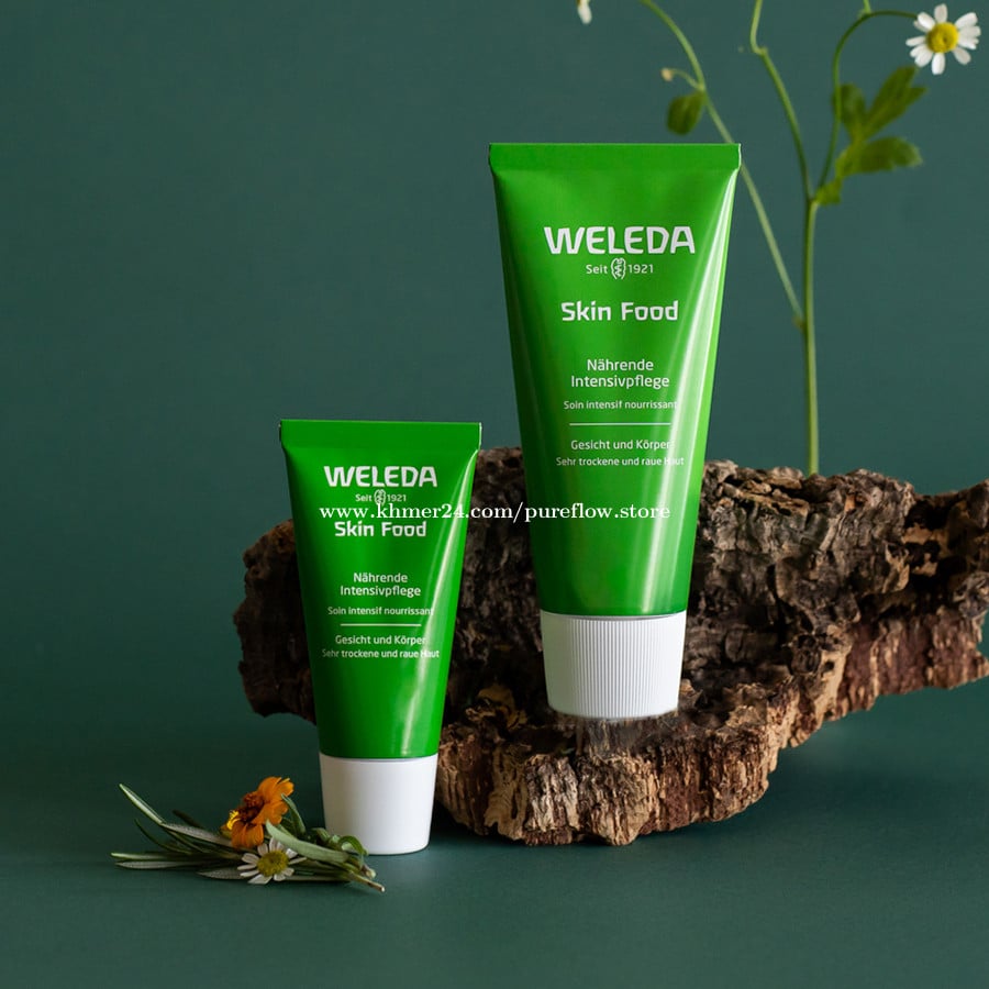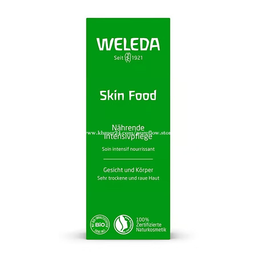 Made in Germany. 100% Natural Ingredients. ផលិតនៅប្រទេសអាល្លឺម៉ង់។ គ្រឿងផ្សំធម្មជាតិ 100%។ 德国制造。100% 天然成分。 WELEDA Skin Food Original Ultra-Rich Cream Product information Weleda Skin Food Original Ultra-Rich Cream is the holy grail moisturizer to tackle dry, rough skin. The award-winning, best-selling formula since 1926 is packed with extracts of Pansy, Chamomile and Calendula to help soothe and nourish your skin, locking in hydration for a healthy-looking glow. This rich multi-purpose cream can be used in endless ways – to replenish dry skin on elbows, knees, hands and heels, as a primer under makeup primer and a highlighter on cheekbones, and even on hair to tame frizz and hydrate dry ends. Benefits - The ultimate moisturizer for dry, rough skin, this tried-and-true lotion intensively nourishes head-to-toe. - Maximum-coverage, fast-absorbing formula locks in hydration to restore your skin to its smoothest self. - Multi-purpose skin savior for anywhere on your body or face – wherever dry skin needs it most. - - Nourish skin on your elbows, knees, hands and heels, and add to your makeup routine as a glow-boosting primer or a natural highlighter on cheekbones. This is a celebrity and makeup artist holy grail to achieve a healthy-looking glow. - Infused with plant extracts of Rosemary, Chamomile, and Pansy in a nourishing base of Sunflower and Sweet Almond Oils to help unlock the look of radiance. - Dermatologist approved. Certified Natural per NATRUE standards. Cruelty-free and always free from synthetic preservatives/fragrances, parabens, and phthalates. ព័ត៌មានផលិតផល ក្រែម Weleda Skin Food Original Ultra-Rich Cream គឺជាក្រែមផ្តល់សំណើមដ៏ល្អឥតខ្ចោះសម្រាប់ដោះស្រាយបញ្ហាស្បែកស្ងួត និងរដុប។ រូបមន្តលក់ដាច់បំផុត និងទទួលបានពានរង្វាន់ចាប់តាំងពីឆ្នាំ 1926 មានផ្ទុកសារធាតុចម្រាញ់ចេញពីផ្កា Pansy, Chamomile និង Calendula ដើម្បីជួយបន្ធូរអារម្មណ៍ និងចិញ្ចឹមស្បែករបស់អ្នក ដោយចាក់សោរសំណើមសម្រាប់ពន្លឺដែលមើលទៅមានសុខភាពល្អ។ ក្រែមពហុបំណងដ៏សម្បូរបែបនេះអាចត្រូវបានប្រើតាមវិធីជាច្រើន - ដើម្បីបំពេញស្បែកស្ងួតនៅលើកែងដៃ ជង្គង់ ដៃ និងកែងជើង ជា primer នៅក្រោមគ្រឿងសម្អាង និង highlighter នៅលើថ្ពាល់ និងសូម្បីតែលើសក់ដើម្បីបំបាត់សក់ជ្រុះ និងផ្តល់សំណើមដល់ចុងស្បែកស្ងួត។ អត្ថប្រយោជន៍ - ជាក្រែមផ្តល់សំណើមចុងក្រោយសម្រាប់ស្បែកស្ងួត និងរដុប ឡេលាបខ្លួនដែលបានសាកល្បង និងពិតប្រាកដនេះ ចិញ្ចឹមស្បែកយ៉ាងយកចិត្តទុកដាក់ពីក្បាលដល់ចុងជើង។ - រូបមន្តគ្របដណ្តប់អតិបរមា និងស្រូបយកបានលឿន ចាក់សោរសំណើមដើម្បីស្តារស្បែករបស់អ្នកឱ្យរលោងបំផុត។ - ក្រែមសង្គ្រោះស្បែកពហុបំណងសម្រាប់គ្រប់ទីកន្លែងនៅលើដងខ្លួន ឬមុខរបស់អ្នក - គ្រប់ទីកន្លែងដែលស្បែកស្ងួតត្រូវការវាបំផុត។ - ចិញ្ចឹមស្បែកនៅលើកែងដៃ ជង្គង់ ដៃ និងកែងជើងរបស់អ្នក ហើយបន្ថែមទៅក្នុងទម្លាប់តុបតែងមុខរបស់អ្នកជា primer ជំរុញពន្លឺ ឬ highlighter ធម្មជាតិនៅលើថ្ពាល់។ នេះគឺជាអ្វីដែលតារាល្បីៗ និងអ្នកតុបតែងមុខចង់បាន ដើម្បីសម្រេចបាននូវពន្លឺដែលមើលទៅមានសុខភាពល្អ។ - លាយបញ្ចូលគ្នាជាមួយនឹងសារធាតុចម្រាញ់ពីរុក្ខជាតិ Rosemary, Chamomile និង Pansy ជាមួយនឹងមូលដ្ឋានដែលមានជីវជាតិនៃប្រេងផ្កាឈូករ័ត្ន និងប្រេងអាល់ម៉ុនផ្អែម ដើម្បីជួយដោះសោរូបរាងដ៏ភ្លឺថ្លា។ - ទទួលស្គាល់ដោយគ្រូពេទ្យជំនាញសើស្បែក។ បញ្ជាក់ដោយធម្មជាតិតាមស្តង់ដារ NATRUE។ មិនមានភាពឃោរឃៅ និងតែងតែមិនមានសារធាតុរក្សាទុក/ក្លិនក្រអូបសំយោគ parabens និង phthalates។ 产品信息 维蕾德 (Weleda) 滋养润肤霜是解决干燥粗糙肌肤问题的必备保湿圣品。这款屡获殊荣、畅销1926年的经典配方蕴含三色堇、洋甘