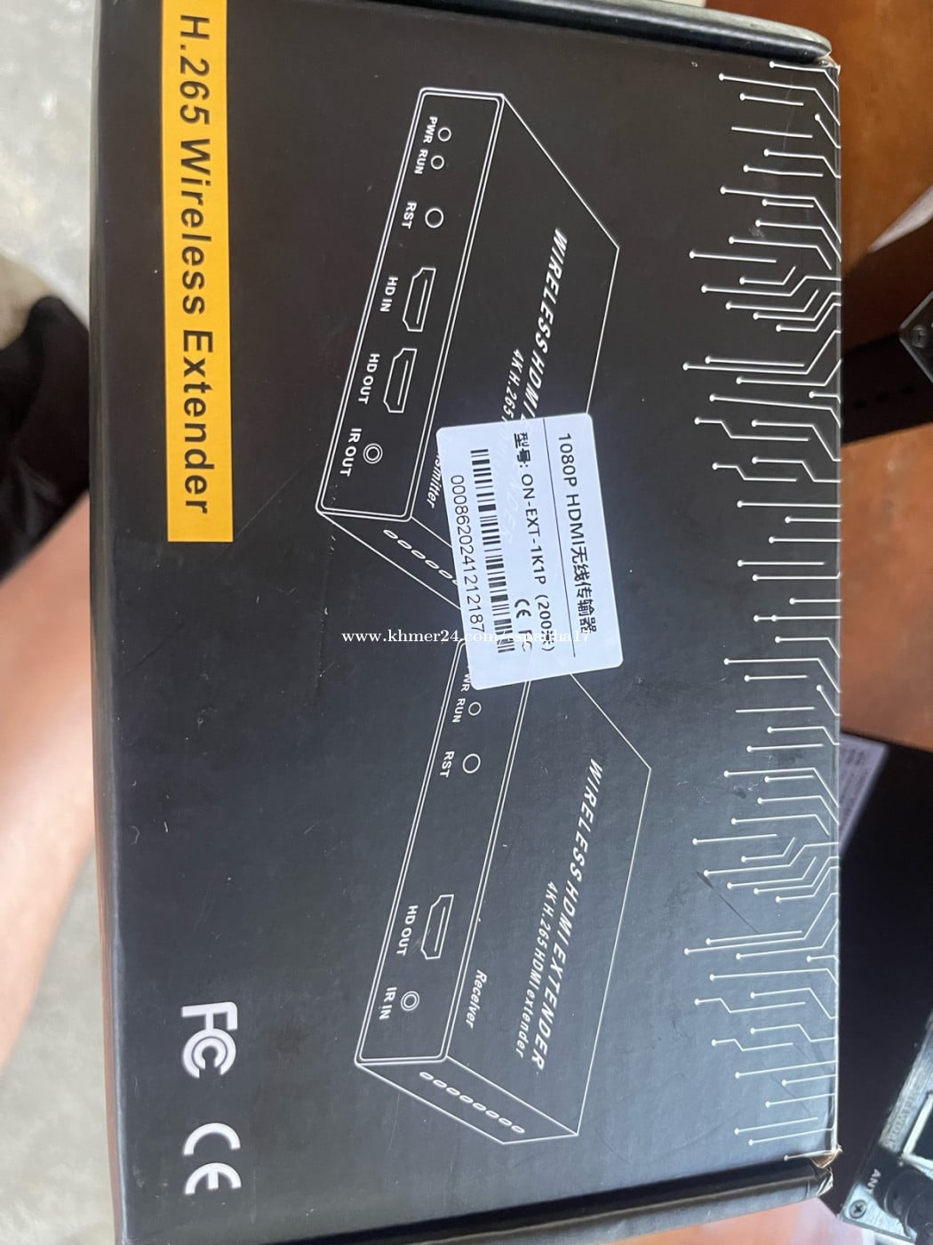 លក់ Wireless HDMI Extender (1 Transmitter + 1 Receiver) ប្រភេទ H.265 គុណភាពល្អ សម្រាប់ transmission ឆ្ងាយដោយគ្មានខ្សែ! បានប្រើម្តងរួច (សាកល្បងប៉ុណ្ណឹង) ស្ថានភាពល្អដូចថ្មី មិនមានបញ្ហា។ • Resolution: 1080P Full HD @60Hz (ច្បាស់ល្អសម្រាប់ TV, Projector, Camera, PC, Laptop) • Range: រហូតដល់ 200m (open space / line of sight គ្មានរបាំង ល្អសម្រាប់ក្រៅផ្ទះ ឬ event) • Technology: H.265 compression ធ្វើឲ្យ latency ទាប រូបភាពមិនជាប់គាំង • Features: Support IR Remote (បញ្ជា TV ឬ device ឆ្ងាយ) • Ports: HDMI In/Out, Power, Reset, Antenna ខ្ពស់សម្រាប់ signal រឹងមាំ • Condition: ប្រើម្តងរួច ស្ថានភាពល្អ 95% ដូចថ្មី មាន box និងគ្រឿងបន្លាស់ពេញ • សម្រាប់ប្រើ: ដាក់ TV ឆ្ងាយ បញ្ចាំង projector ក្រៅផ្ទះ ឬ live streaming camera ជាដើម។ Plug & play ងាយប្រើ!