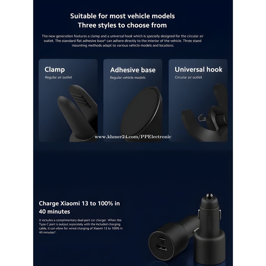 Xiaomi Wireless Car charger 50W ជាឧបករណ៍សាកថ្មទូរសព្ទ័ឥតខ្សែងាយស្រួលដាក់ក្នុងឡានដែលមានកម្លាំងខ្លាំងរហូតដល់ទៅ 50W ធ្វើអោយការសាកថ្មបានលឿនមិនធ្វើឲ្យខូចថ្ម ស្រួលប្រើប្រាស់ ចំណេញពេលវេលា និង មានគុណភាពខ្ពស់ 💲តម្លៃត្រឹមតែ 59$ ប៉ុណ្ណោះ 🛡ធានារយៈពេល 6 ខែ 🔘លក្ខណៈពិសេស ☑️កម្លាំងសាកថ្មលឿនរហូតដល់ទៅ 50W ☑️សាកថ្មពេញក្នុងរយៈពេលត្រឹមតែ 50 នាទីប៉ុណ្ណោះ ☑️កន្លែងគៀបឧបករណ៍ដាក់ទូរសព្ទអាចដំឡើងបានរហូតដល់ 84mm សមស្របសម្រាប់ទាំងអេក្រង់ធំ និង តូច ☑️កន្លែងដាក់ទូរសព្ទសាកថ្មរចនាឡើងមិនធ្វើឲ្យរអិលងាយស្រួលប្រើប្រាស់ ☑️ឧបករណ៍រចនាឡើងមានប៉ូតុងចុចងាយស្រួលដោះទូរសព្ទចេញចូល ☑️ឧបករណ៍មានកន្លែងបំពាក់ដល់ទៅ 3 របៀបដូចជា ឃ្នាប ស្អិត និង ទំពក់ ☑️មានបំពង់បញ្ចេញចរន្ដខ្យល់កាត់បន្ថយកម្ដៅនៅពេលសាកថ្មធ្វើអោយដំណើរការប្រសើរឡើង ☎️ ទំនាក់ទំនង: 010843xxxClick To Call (Smart) / 012843xxxClick To Call (Cellcard) 📒 ពិនិត្យមើលម៉ូដផ្សេងៗ: https://redbox.menu/ppelectronic 📲Telegram: https://t.me/PP_Eletronic_011 🏢 អាស័យដ្ឋាន: ផ្ទះលេខ 56D2 ផ្លូវ 257 សង្កាត់បឹងសាឡាង ខណ្ឌទួលគោក រាជធានីភ្នំពេញ 📍Google Map: https://maps.app.goo.gl/NQtwdRgV2Dsk7awG7
