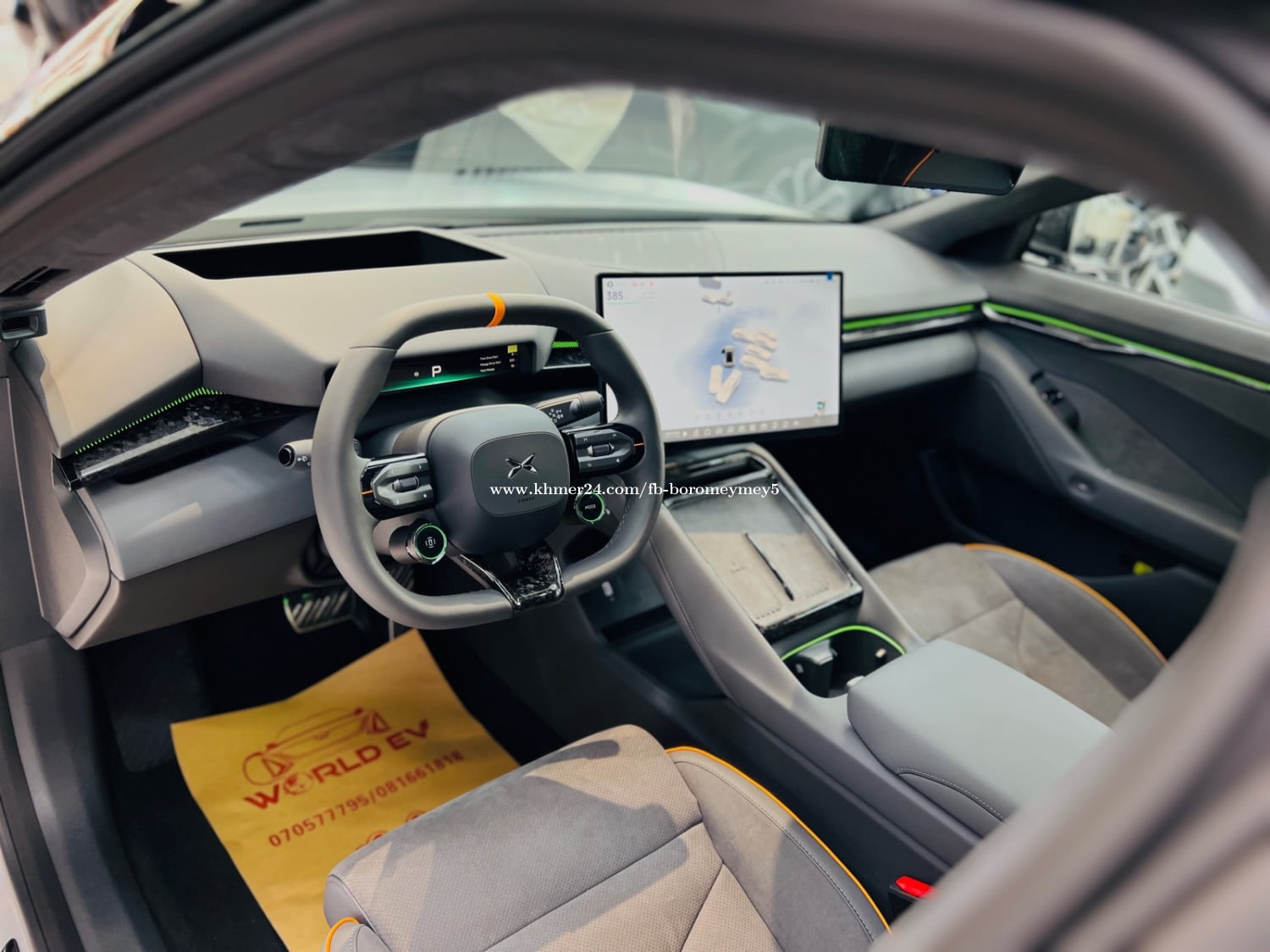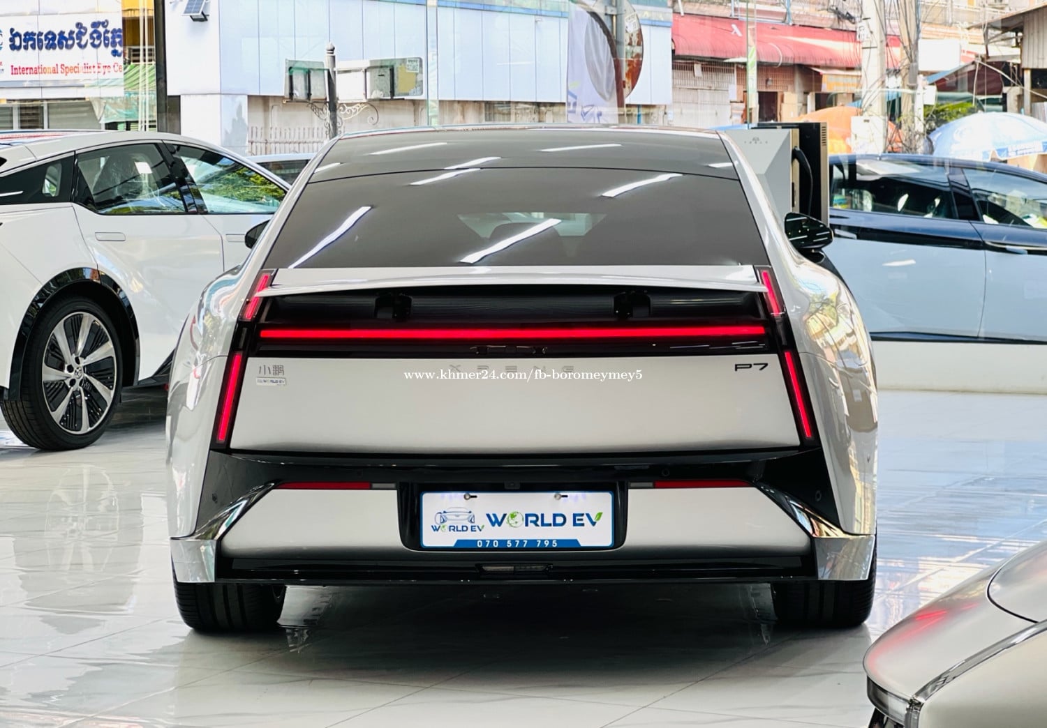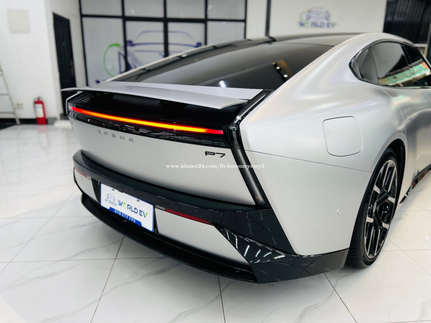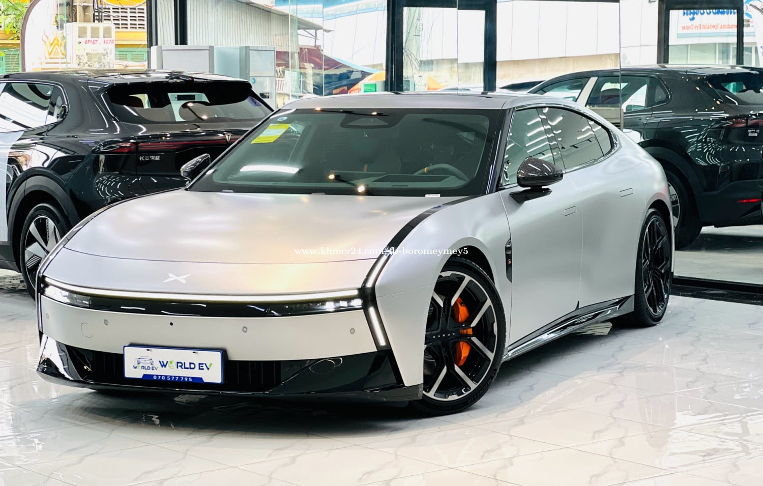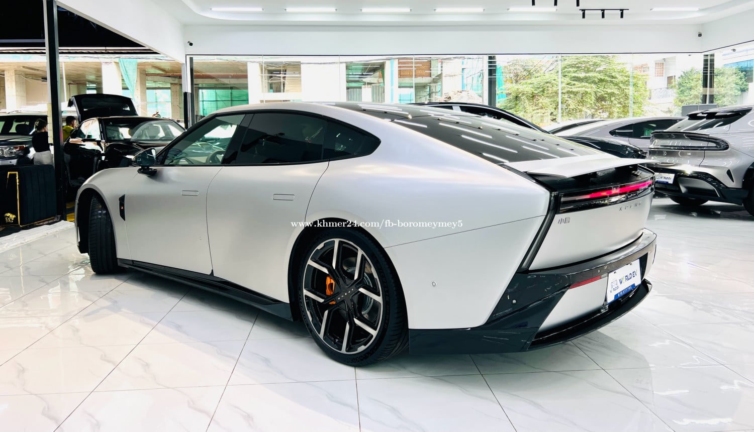 Xpeng P7 2025 750 Penyi Top of the line ( matte Gray ) រថយន្តមានក្នុងស្តុកស្រាប់ ( in stock ) - Range 750km - កម្លាំងអូស 695NM - កម្លាំងសេះ 594HP - អាគុយ 92.2KW - កម្លាំងម៉ូទ័រ 437KW - ប្រវែង 5017mm - បណ្ដោយ 3008mm - ទទឹង 1970mm - កម្ពស់ 1427mm - ទម្ងន់ 2575Kg - Speaker : 23គ្រាប់ - Screen: 15.6inch (បង្វិលបាន) - យ៉ាន់ : 21inch - កៅអី Zero Gravity Chair : ម៉ាស្សា, ក្ដៅ, ត្រជាក់ - កាមេរ៉ា : 630ដឺក្រេ(panoramic images) - ជំនួយការផ្លាស់ប្តូរផ្លូវ (Lane change assistance) - ប្រព័ន្ធជំនួយការរក្សាគន្លងផ្លូវ (Lane Keeping Assist System ) - ចំណុចប្រទាក់កៅអីកុមារ (ISOFIX) - រូបភាពជំនួយការបើកបរ (Driving assistance images) - ការផ្លាស់ប្តូរគន្លងដោយស្វ័យប្រវត្តិ(Automatic Lane ChangeAssist) - ចតរថយន្តដោយស្វ័យប្រវត្តិ(Automatic parking) - Spoiler - Driving mode: Sport , Comfort, ECO - តេឡេចុចបញ្ជាពីរចម្ងាយ(Remote control key type) - Head-up display (HUD)