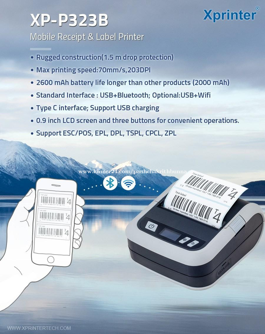 max paper size: 76mm Interface Type: USB+BT Max. Resolution: 203DPI warranty(year): 1-Year software development kit (sdk): Yes after-sales service: Call Center and on-line Technical Support private mold: Yes products status: Stock place of origin: Guangdong, China brand name: Xprinter black print speed: 70 mm (2.7")/s Color Print Speed: / Battery: 2500mAh Emulation: TSPL,EPL,ZPL,DPL,CPCL,ESC/POS Max print length: 1778(70'') Power supply: DC 9V2A Label roll capacity: 50mm(Diameter) Operating system: Win/Linux/IOS/Android Weight: 357g OLED screen: Available Use: Barcode Printer Type: Direct Thermal Printer Selling Units: Single item Single package size: 38X36X28 cm Single gross weight: 0.720 kg