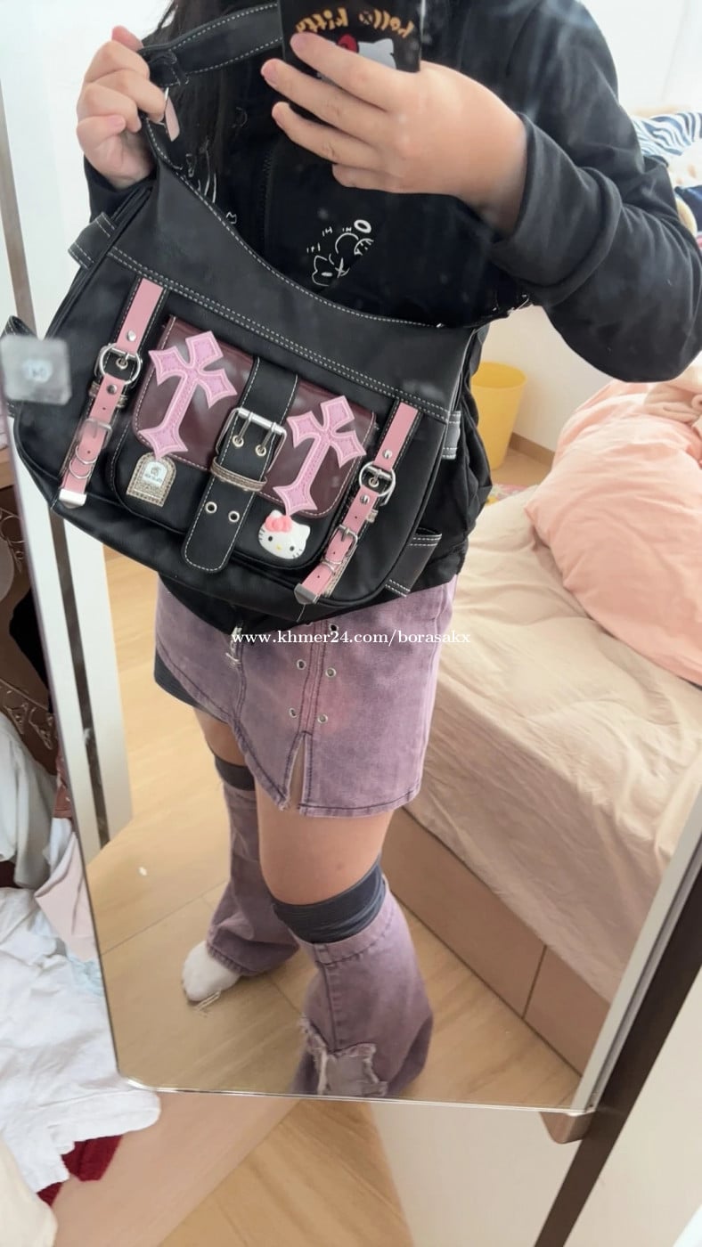 កាបូបដៃពេញនិយមសហសវត្ស2025 y2k girl kitty cat bag black and pink contrast crossbody bag ធានារូបនិងអីវ៉ាន់ដូចគ្នាផ្ទាល់ Pre order តម្លៃ $19 ហ្វីសេវាដឹកក្នុងក្រុង 15ថ្ងៃ អីវ៉ាន់មកដល់បន្ទាប់ពីដាក់ការបញ្ជារទិញ ទីតាំង: ភ្នំពេញ