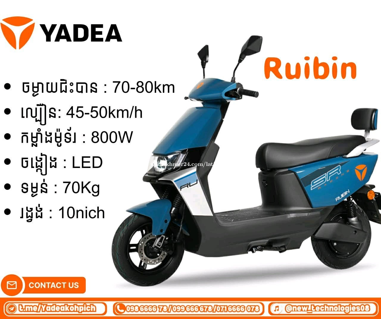 មកមួយទៀតហើយជាមួយនឹងម៉ូឌែលថ្មី YADEA -Ruibin បើកបរបានគ្រប់ស្ថានភាពផ្លូវ ប្រកបដោយភាពស៊ីវីល័យ ទំនើបទាន់សម័យ ប្រណិតភាព សមស្របតាមយុគ្គសម័យថ្មី សម័យឌីជីថល ដែលមានភាពសន្សំសំចៃខ្ពស់ បំពាក់ដោយប្រព័ន្ធបច្ចេកវិទ្យាទំនើបៗ និងមិនប៉ះពាល់បរិស្ថាន ☎️សម្រាប់ព័ត៌មានលម្អិត ៖ 093300xxxClick To Call/098666xxxClick To Call 📍ទីតាំង៖ https://maps.app.goo.gl/Qtt1wTff4XG1kLXr9 (យ៉ាឌា កោះពេជ្រ អាគារអេលីហ្សេ)