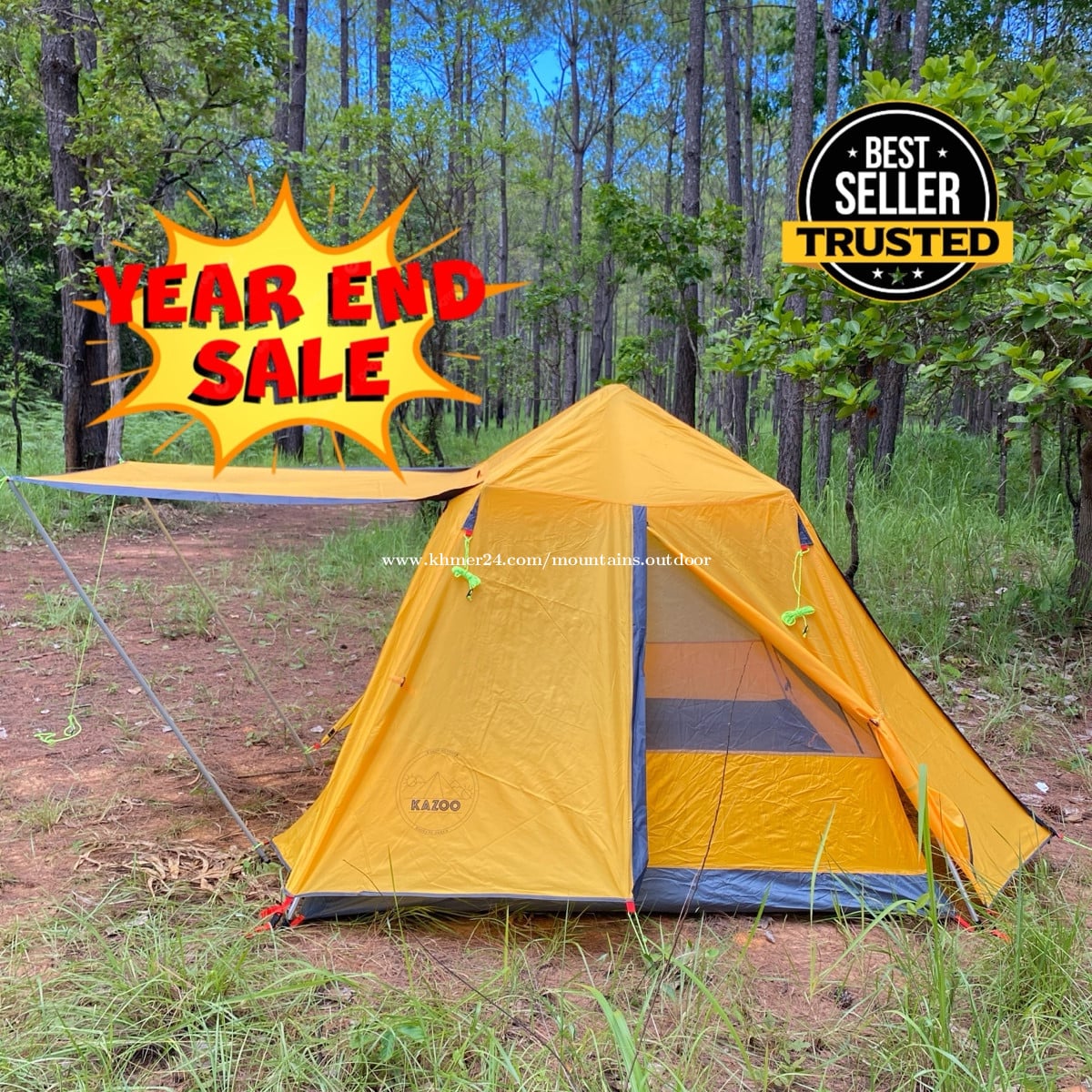 -Package 91.4 x 19.1 x 17.8 cm -Seasons: 3 Season -Sleeping Capacity: 3 PERSON Pole Material: Aluminum+Fiberglass -Pole Inner Fabric: B3 mesh+190T Breathable Polyester -Floor Fabric: 150D Oxford -Rainfly Fabric: 190T Polyester -Waterproof Rate: 3000mm Design Type: Freestanding -Weight: 5.4kg - Color: orange, and blue - Material: 190T ————————————————————— *Contact:0966381xxxClick To Call/https://t.me/mountains_outdoor *Address:Borey Sorlar, 7A Street 371, Phnom Penh