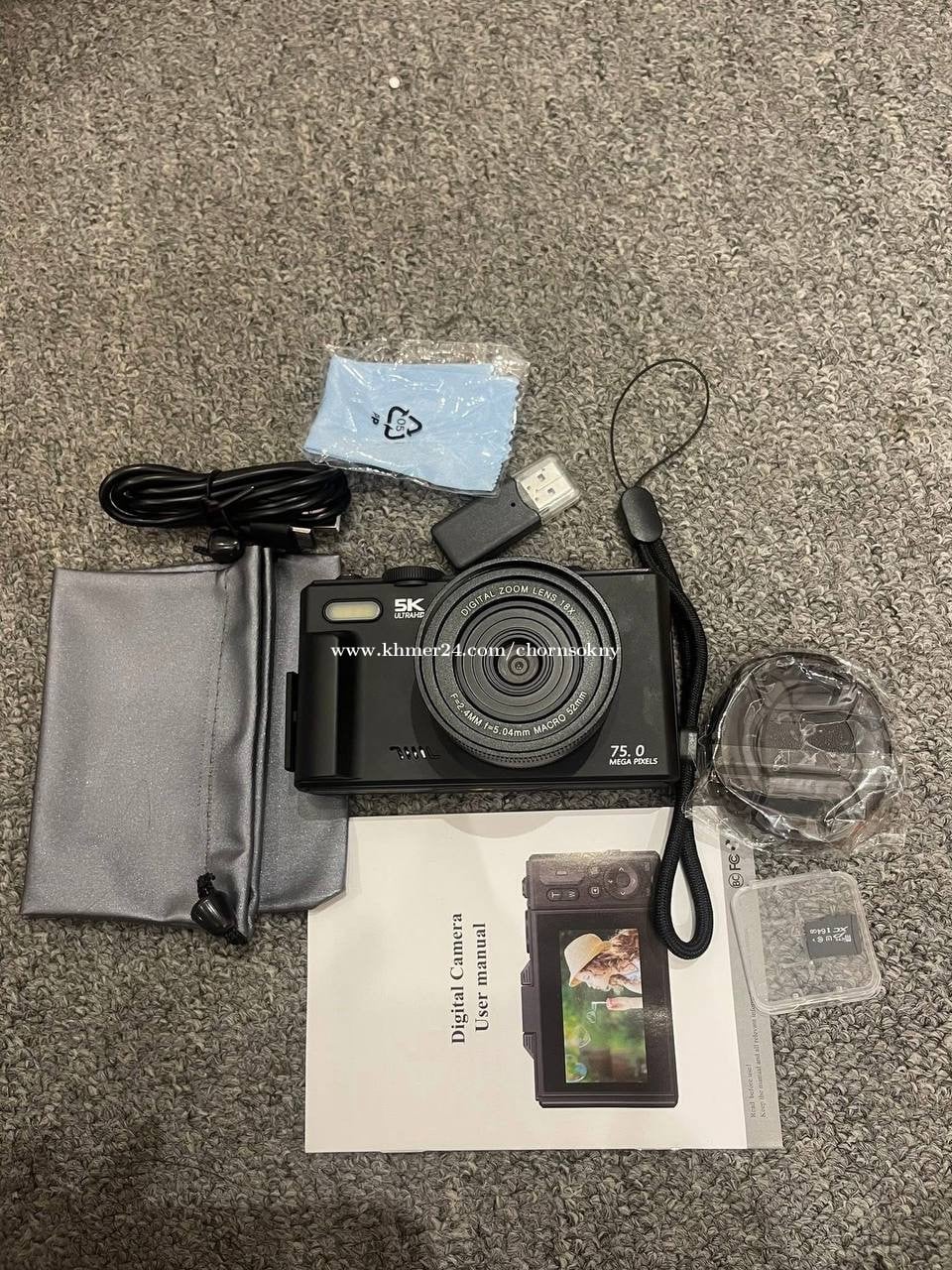 free memory 60gb charger x1 adapter x1 len cover x1 cleaning cloth x1 camera pouch x1