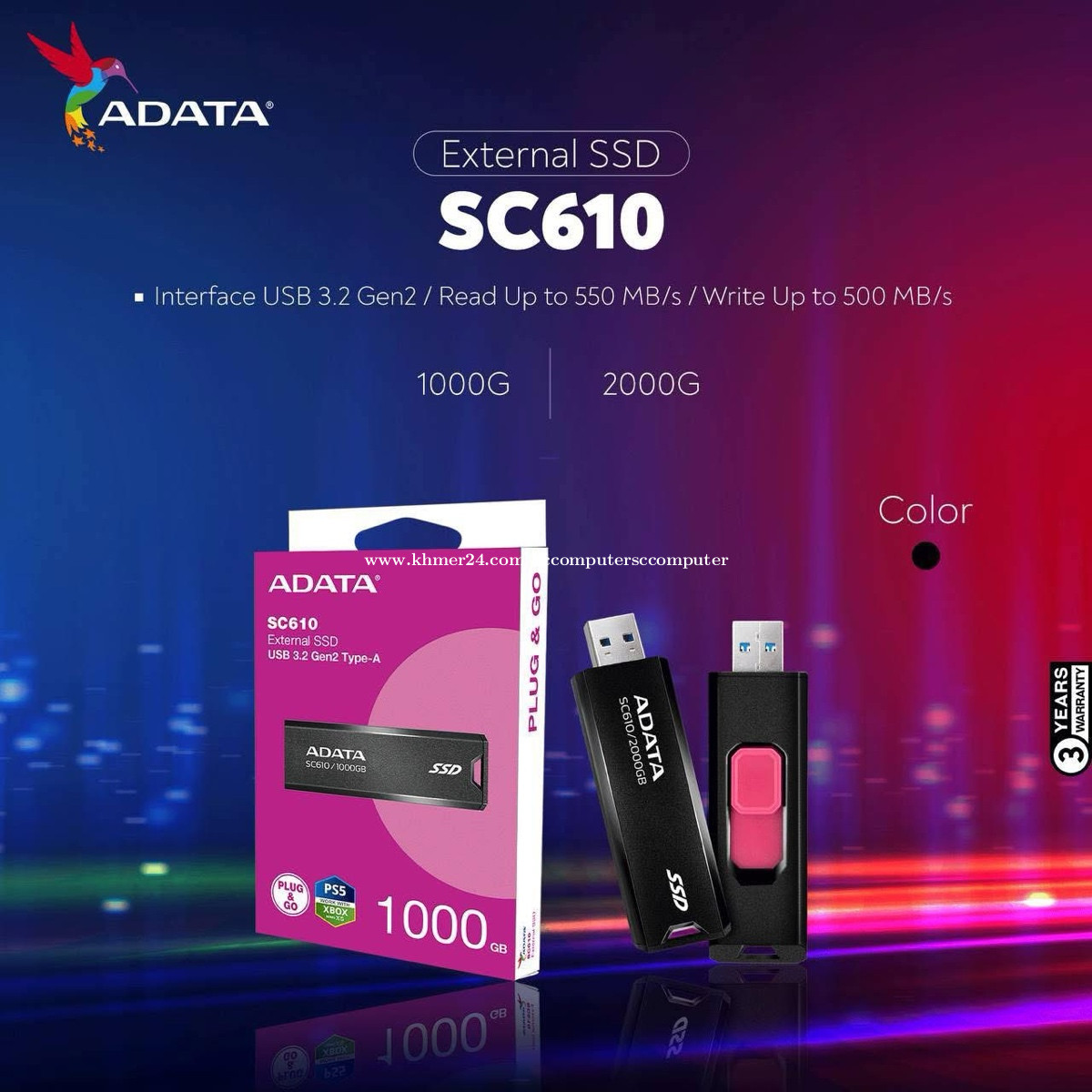 External SSD SC610 Brand Adata ថ្មីប្រអប់ អីវ៉ាន់មាននៅក្នុងស្តុកស្រាប់បងៗអាចធ្វើការកម្ម៉ង់បាន មានធានារយះពេល1ឆ្នាំពេញ 📩 Price :xx$ 💵 -SSD External SC610 1000G 125$ -SSD External SC610 2000G 250$ 👉🏻Speed Read: 550MB/s Write: 500MB/s មាននៅហាង SC Computer អេសសុីកុំព្យូទ័រ 💁🏻♀️✅ ឆាតមកផ្ទាល់បានចា ❤️ ☎️ 089978xxxClick To Call telegram(ឈី ឈី) ☎️ 016200xxxClick To Call Smart ចុចLink ចូលគ្រុបបោះដុំ បាន 👇🏻 ✅ Link Group បោះដុំ = https://t.me/+G4d1DH1HM51jZGE1 ✅Link TikTok = https://www.tiktok.com/@kimchhy77?_t=8rsylp5kaDH&_r=1 ✅Link Telegram = https://t.me/kimchhy_999 ✅Link Khmer 24 = https://www.khmer24.com/sccomputersccomputer ✅Link FB = https://www.facebook.com/share/1HXXej9fPH/?mibextid=LQQJ4d ✅Maps : https://maps.app.goo.gl/amXqFMtwRzDdWHKQ9 អរគុណបងៗសំរាប់ការគ្រាំទ្រហាងSC Computer អេសសុីកុំព្យូទ័រ យើងខ្ញុំរហូតមក🙏🏻❤️