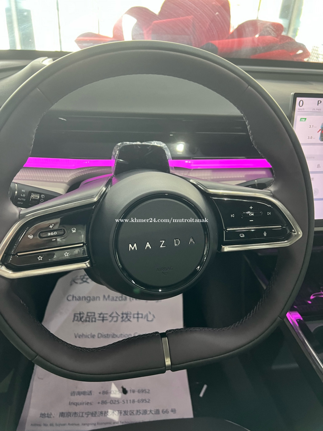 តម្លៃឡានអាចចចារបាន ✅Mazda EZ60 600km Max កំលាំងសេះសរុប 电动机总马力:258 Ps កំលាំងរមួលសរុប 电动机总扭矩:290 N•m កំលាំងម៉ូទ័ក្រោយ 后电机最大马力:190Ps កំលាំងរមួលម៉ូទ័រក្រោយ 后电机最大扭矩:290 N•m សន្ទុះពីល្បឿន0-100 0—100km/h:7.9s ល្បឿនអតិបរមា 最高车速:185 km/h រត់បានរយ:ចំងាយ CLTC纯电续航:600 km ទំហំអាគុយ 电池容量:77.94kWh ស៊ីភ្លេីងក្នុង100km 百公里耗电量:14.7kWh/100km រយះពេលសាកលឿន 快充时间:0.25小时 ខ្នាតរថយន្ត尺寸:4850×1935×1620mm ធ្វេីចលនាដោយប៉ុងមួយ 驱动方式:2驱 ធានា质保:3ឆ្នាំ年或10ម៉ឺនគីឡូម៉ែត万公里