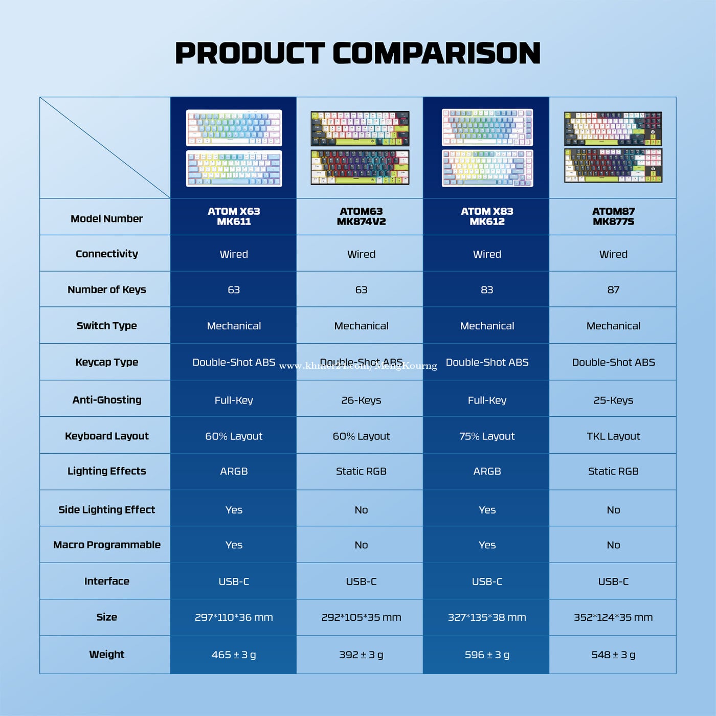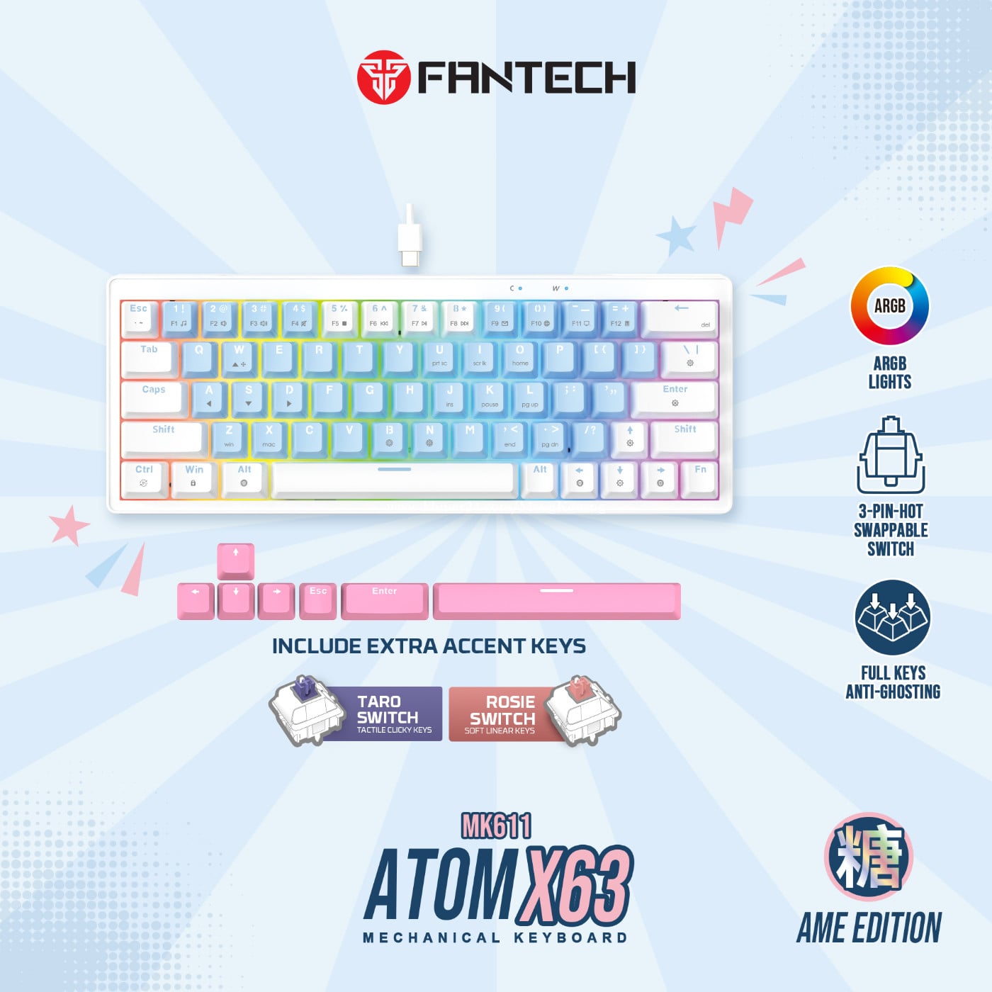 Fantech MK611 ATOM X63 AME Edition โ Mechanical 60% 63Keys Taro Switch โ Full Keys Anti Ghosting with 11 RGB Mode โ 3 Pin Hot Swappable Switch โ Double Injection Keycaps with 3 Color Combination Color : AME White Blue, AME Blue White ๐1 years warranty *This price not include delivery ๐แแแแแแแแฅแกแผแแแแ ๐๐๐ แแแแแแแแ 012787xxxClick To Call https://t.me/cmksale1 Join โฌ Telegram ๐ https://t.me/+pMlYdQSBYkEyYTU1 แแพแแแแธแแแฝแแแถแ แแแแแแถแแแแแธแ แแแแขแทแ แแทแแแถแแแแแแแแผแแแทแแแแ แแธแแฝแแแแแแฝแแแปแแแแแผแแแ ๐cmkcomputer.com ๐https://www.facebook.com/MengKourngComputer ๐https://www.facebook.com/cambodiafantech