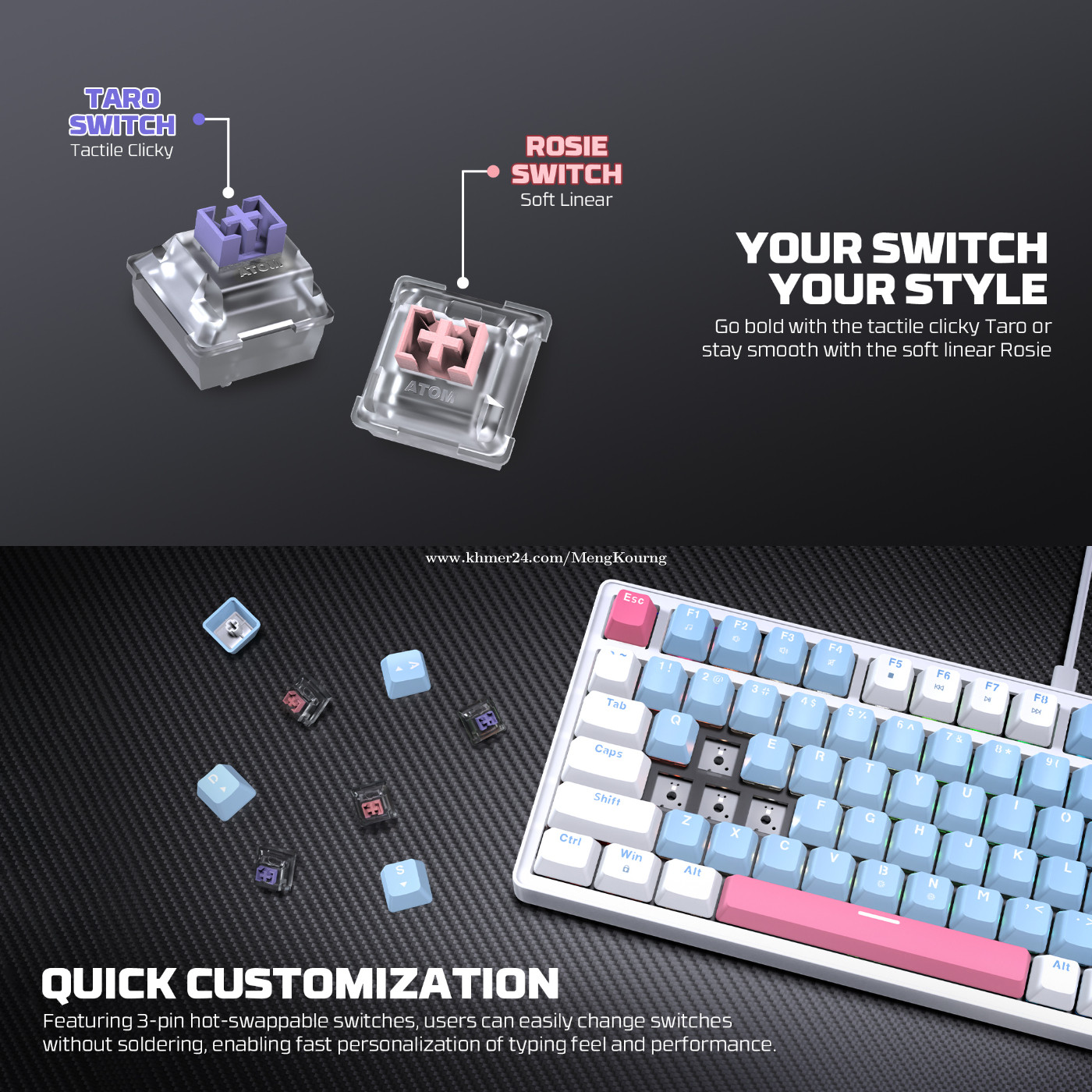 Fantech MK612 ATOM X83 AME Edition โ Mechanical 75% 83Keys Taro Switch โ Full Keys Anti Ghosting with 11 RGB Mode โ 3 Pin Hot Swappable Switch โ Double Injection Keycaps with 3 Color Combination Color : AME White Blue, AME Blue White ๐1 years warranty *This price not include delivery ๐แแแแแแแแฅแกแผแแแแ ๐๐๐ แแแแแแแแ 012787xxxClick To Call https://t.me/cmksale1 Join โฌ Telegram ๐ https://t.me/+pMlYdQSBYkEyYTU1 แแพแแแแธแแแฝแแแถแ แแแแแแถแแแแแธแ แแแแขแทแ แแทแแแถแแแแแแแแผแแแทแแแแ แแธแแฝแแแแแแฝแแแปแแแแแผแแแ ๐cmkcomputer.com ๐https://www.facebook.com/MengKourngComputer ๐https://www.facebook.com/cambodiafantech