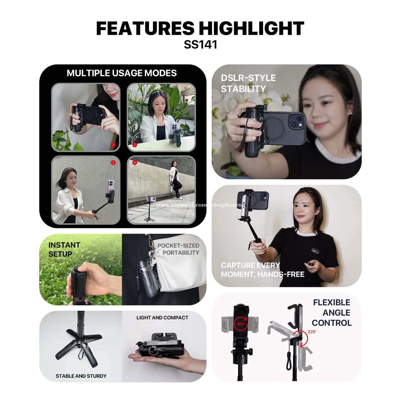 Fantech SS141 Selfie Stick Quadpod ✅Bluetooth 5.2 v ✅Adjustable Heigh : Up to 41.5cm ✅360 Degrees of Swivel ✅Phone with Width Between 65-93mm ✅Remote Shutter Type-c rechargeable *This price not include delivery 🛒កម្ម៉ង់ឥឡូវនេះ 👇👇👇 ផ្នែកលក់ 012787xxxClick To Call https://t.me/cmksale1 Join ⏬ Telegram 🔔 https://t.me/+pMlYdQSBYkEyYTU1 ដើម្បីទទួលបាន ព័ត៌មានថ្មីៗ លម្អិត និងការផ្តល់ជូនពិសេសៗ ពីជួម៉េងគួងកុំព្យូទ័រ 🌐cmkcomputer.com 🌐https://www.facebook.com/MengKourngComputer 🌐https://www.facebook.com/cambodiafantech