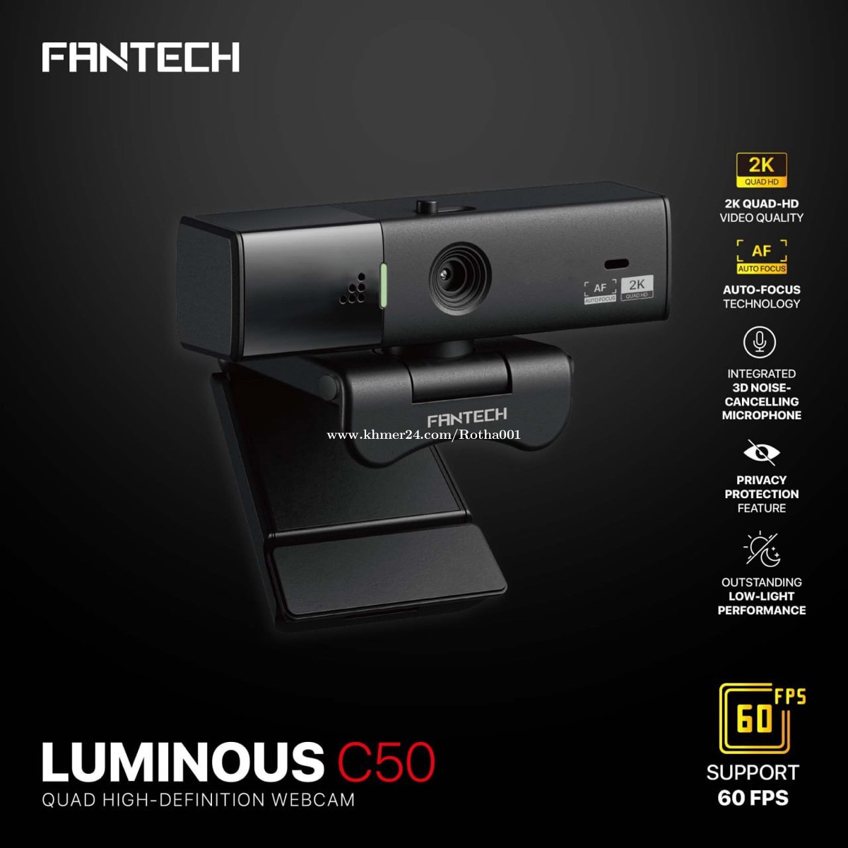 Fantech WebCam C50 ជាប្រភេទWebcam ដែលមានកំរិតVideo ច្បាស់ល្អ Support ដល់ 2K ហើយ MIC របស់វា ស្រូបសំលេងបានល្អ Fantech Webcam Luminous C50 សម្រាប់ប្រើជាមួយ Computer Desktop 👉2K Quad High deginition 👉Camera 5MP 👉build in Microphone 👉Support 60FPS@1080 / 30FPS@1440p 👉Auto Focus Technology -ធានារយៈពេលមួយឆ្នាំ ----------------------------- -តម្លៃ : 40$ ----------------------------- ទីតាំង : ផ្លូវសម្តេចមុនីរ៉េត (217) ផ្សារចេនឡា (ជាប់ផ្សារដេីមគរ) ភ្នំពេញ ច្រកទី3 តូប C2-64 Tel : O15 95 94 64 Tel : O92 894 591 Telegram Telegram : https://t.me/Thanrotha My Websites: https://sites.google.com/view/rtcomputershop/accessories
