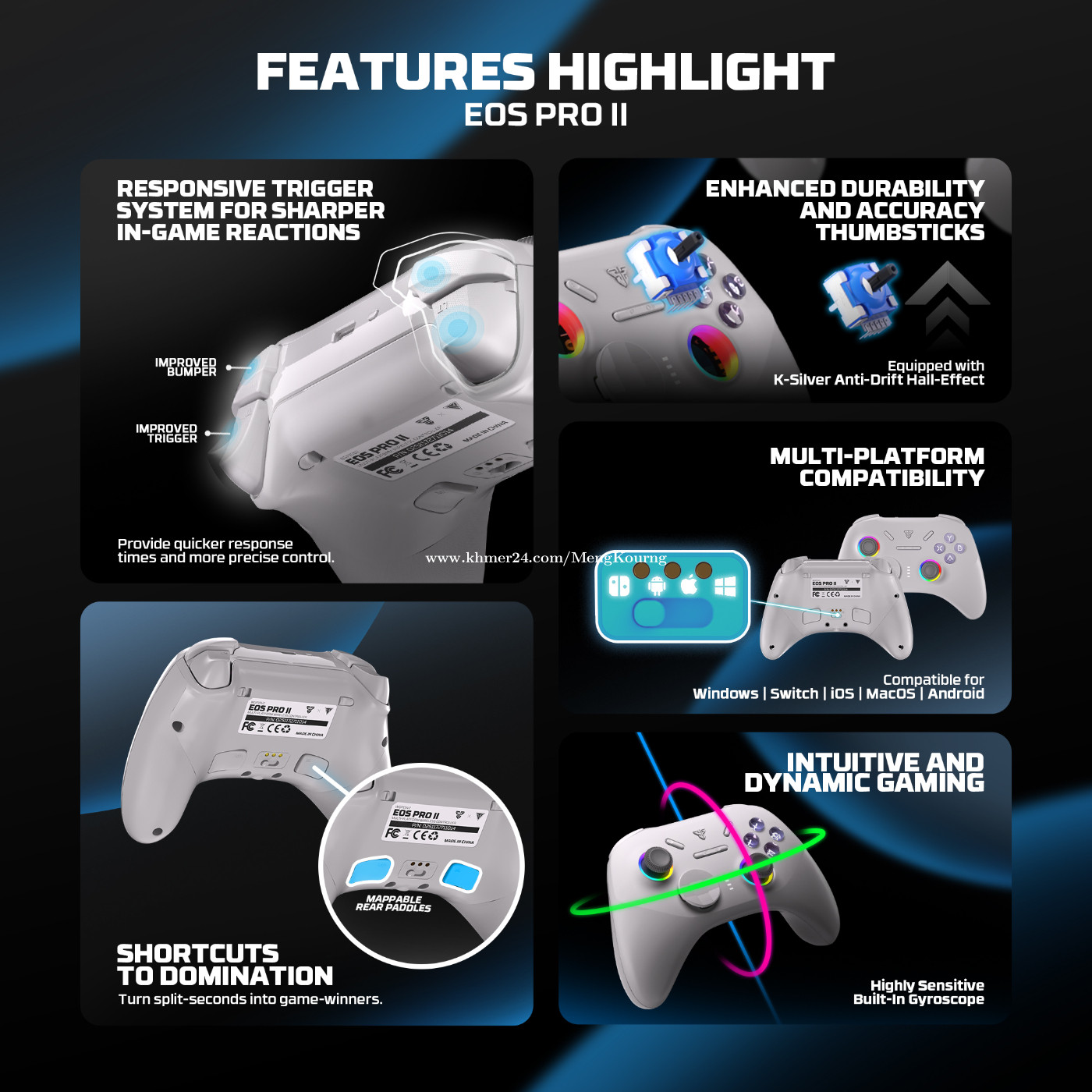 Fantech WGP15v2 EOS Pro ll Multiplatform Gamepad 3 in 1 ๐ฅฐConnectivity: BT5.0, Wireless, Wired โ Button Type Key๏ผ Membrane 22 Keys โ Hall Effect : Analog and Trigger โ Sensor : 6 Axis Gyroscope โ Battery Charging: 600mAh (up to 18hours Usage) , 3 Hours of Charging โ 3 level Adjustable mode Turbo, 4 Level adjustable Rumble โ Programmable 12 Buttons โ Compatible: PC/ Steam, Switch, IOS, MacOS, tvOS , Android, Tesla Vehicles, Cloud Gaming/Game Pass Color : Solid White , Solid Grey ๐1 YEAR WARRANTY *This price not include delivery ๐แแแแแแแแฅแกแผแแแแ ๐๐๐ แแแแแแแแ 012787xxxClick To Call https://t.me/cmksale1 Join โฌ Telegram ๐ https://t.me/+pMlYdQSBYkEyYTU1 แแพแแแแธแแแฝแแแถแ แแแแแแถแแแแแธแ แแแแขแทแ แแทแแแถแแแแแแแแผแแแทแแแแ แแธแแฝแแแแแแฝแแแปแแแแแผแแแ ๐cmkcomputer.com ๐https://www.facebook.com/MengKourngComputer ๐https://www.facebook.com/cambodiafantech