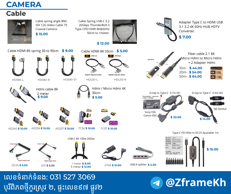 Fiber cable 2.1 8K Micro Hdmi to Micro Hdmi + 2 Adapter Hdmi 10 meter : 44$ 20 meter : 54$ Delivery +24H to PNH, 24/48h in all 25 province មានក្នុងស្ចុកស្រាប់ អាចទាក់ទងមកបានឫ ឆាតមកផេកក៌បាន៕ ហេីយមានលក់ ដូចជា សំភារៈសម្រាប់កាមេរ៉ា កំព្យូរទ័រ មានតម្លៃសមរម្យ: 👉លេខទំនាក់ទំនង: 0315273xxxClick To Call 👉តេលេក្រាម : t.me/ZframeKh 👉បញ្ជីតម្លៃ: t.me/Zframegr 👉https://www.facebook.com/zframekh Google maps : https://g.co/kgs/ukpxkbg 📍បុរីពិភពថ្មីកួរស្រូវ ២, ផ្ទះលេខ៩៧ ផ្លូវ២ 📍Borey New World Kor Srov II, #97 street 2 #zframe #camera #filmmaking #filmmaker #Sony #lumix #blackmagic #nikonphotography #fujifilm #zframekh #sigma #cinema #phnompenh #Cambodia #studio #godox #light #nanlite #aputure #bowensmount #pdmovie #liveair4smart #MOTORSMART #autofocus #followfocus #dulens #filmmaking #cameragears #cinematic #camerasetup #powerbank #powerstation #hdmi