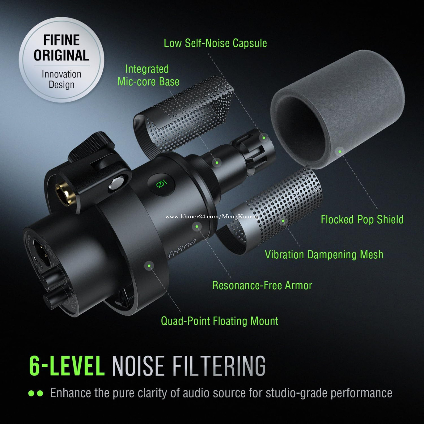 FIFINE K688 USB/XLR Dynamic Mic with Shock Mount iF Design Award ✅Professional dynamic gaming microphones ✅Polar Pattern: Cardioid ✅USB Power Consumption: 5±0.25 V ✅Current: 86 mA Bit Depth/Sample Rate: 16-bit/44.1k-48k Hz ✅Frequency Response: 50-15k Hz ✅S/N Ratio:>80 dB, Max. SPL: 130 dB ✅Sensitivity: -58±3dB, Noise Level: 75 dB Adjustable Gain Range: 0 to +12 dB ✅Platform: PC, Laptop, Desktop, Mixer, Audio Interface, Sound Card 👍1 year warranty *This price not include delivery 🛒កម្ម៉ង់ឥឡូវនេះ 👇👇👇 ផ្នែកលក់ 012787xxxClick To Call https://t.me/cmksale1 Join ⏬ Telegram 🔔 https://t.me/+pMlYdQSBYkEyYTU1 ដើម្បីទទួលបាន ព័ត៌មានថ្មីៗ លម្អិត និងការផ្តល់ជូនពិសេសៗ ពីជួម៉េងគួងកុំព្យូទ័រ 🌐cmkcomputer.com 🌐https://www.facebook.com/MengKourngComputer 🌐https://www.facebook.com/cambodiafantech