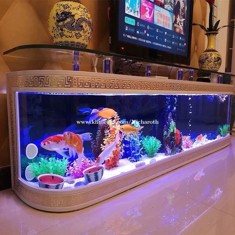 Fish tank ទូរត្រីកោង កម្រាស់កញ្ចក់ 12 លី ប្រវែង 2 ម៉ែត្រ លក់វិញ កញ្ចក់នៅល្អ អត់មានប្រេះស្រាំ កម្ម៉ង់មក1000$ ជាង លក់វិញ 350$ ( ដឹកខ្លួនអែង) ឆាត តេលេក្រាម 078800xxxClick To Call