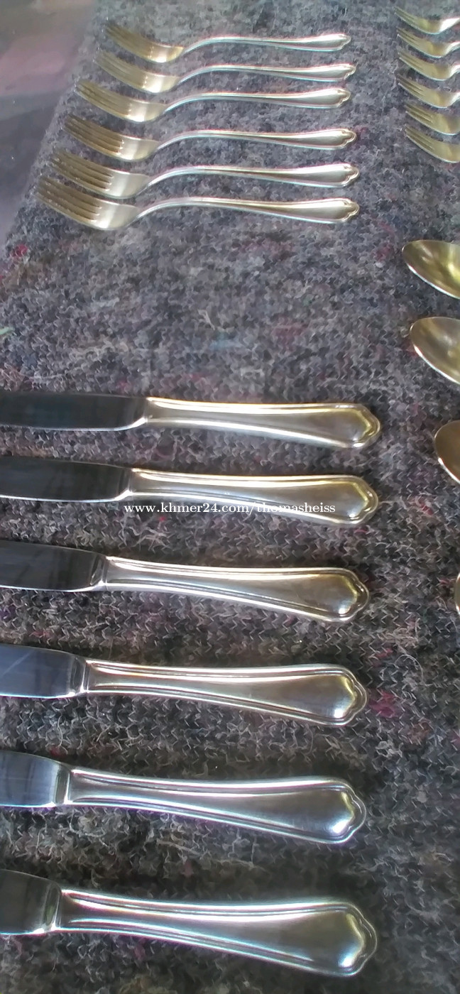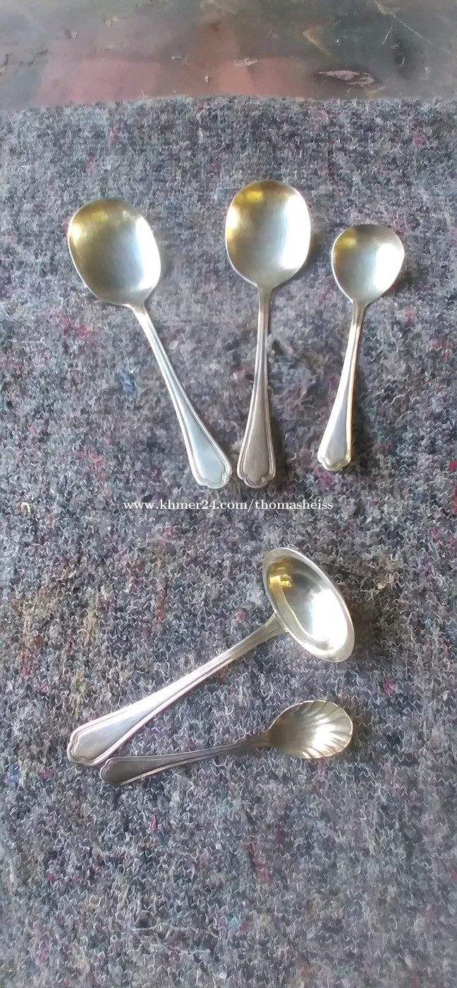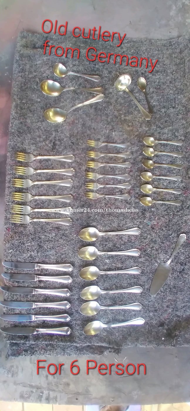 For sale is an antique flatware set for 6 people, including a cake server and various sauce ladles... 36 pieces, made in Germany... Justinus stainless steel 18-10... 🙏🙏🙏🙏