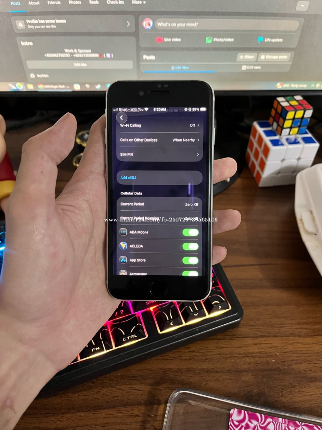 iPhone Se2 64G ស្នុំ Zin scan ដាក់ Sim បាន 2 Sim1 + ESIM តួរ 98-99% ពេញចឹត្តមកយកដល់ទីតាំងបាន ភ្នំពេញបឹងកេងកង