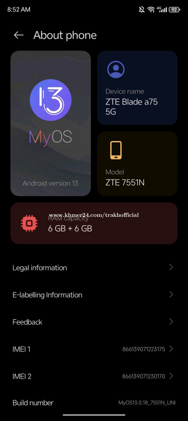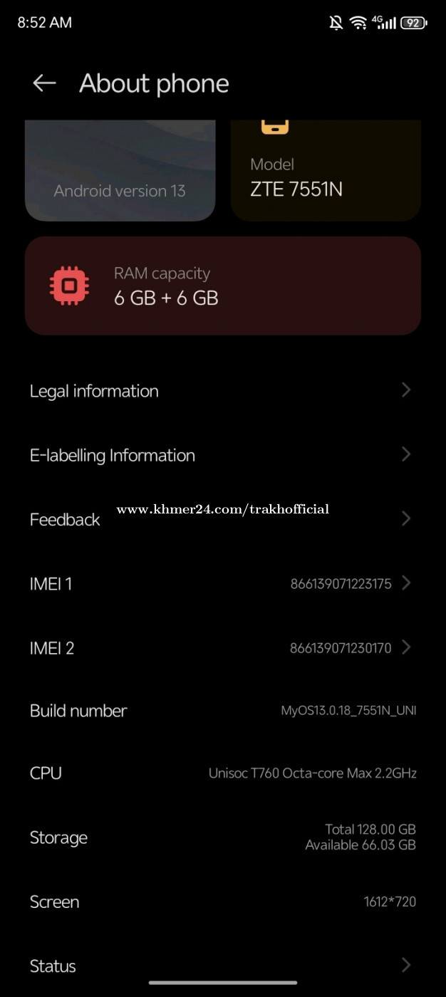 Ram 6+6 Rom 128G use os 13 ល្បឿងអេក្រង់ 120 hz ថ្ម 5000mAH ស្អាត 98% CPU unisoc T760 octa- core Max 2.2GHz ដាក់សុីមខលចេញចូល អុីនធើណេត ដើរលឿន smooth ល្អ (បញ្ជាក់ China version)