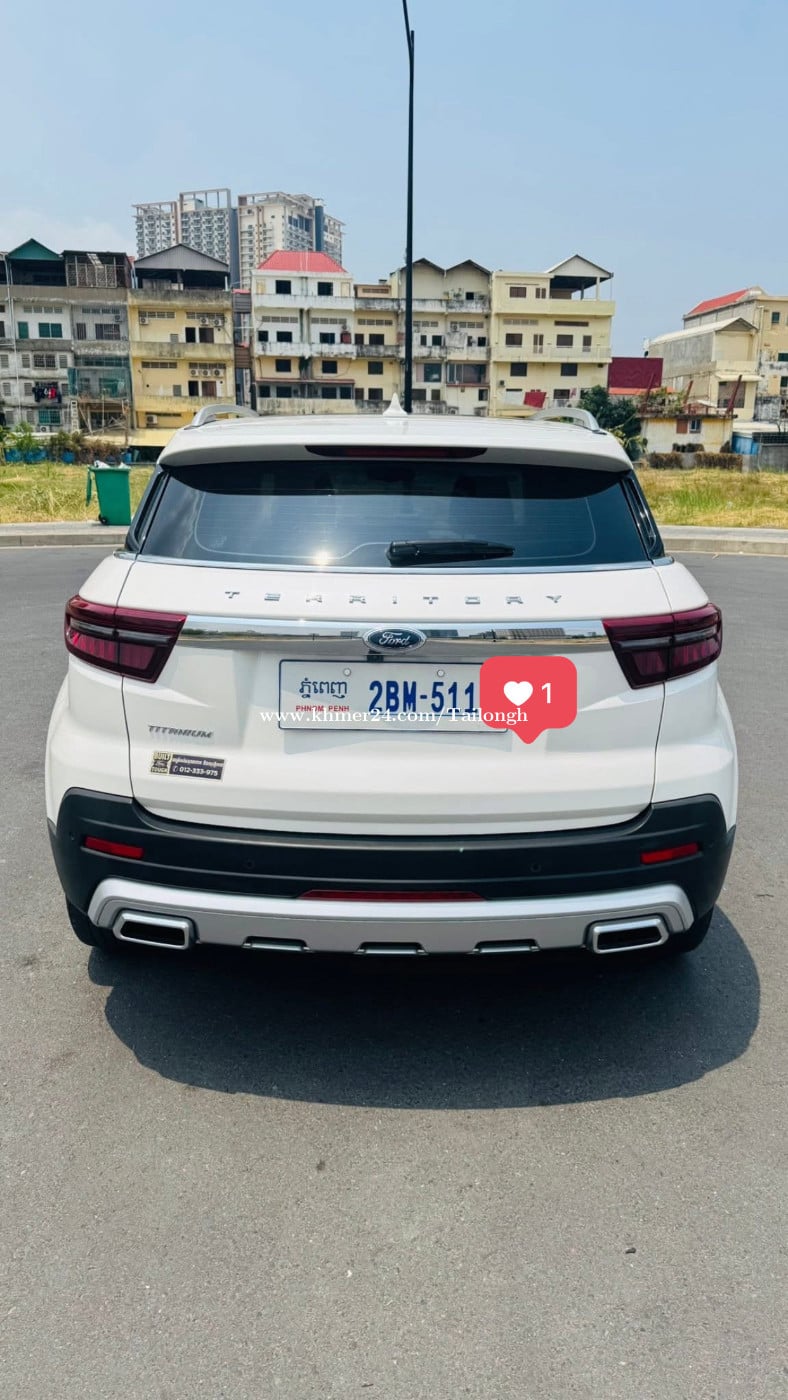 ➡️ ម៉ាករថយន្ដ (Model) : FORD Territory - ឆ្នាំផលិត (Year) : 2021 ឡានស្អាត - ពណ៌ខាងក្រៅ (Exterior) : ស - ពណ៌ខាងក្នុង (Interior) : ខ្មៅ - ទំហំម៉ាស៊ីន (Engine) : V4 (1.5Liter) - ប្រភេទប្រេង (Fuel) : សាំង - ផ្លាកលេខ (Plate Number) : មានលេខ