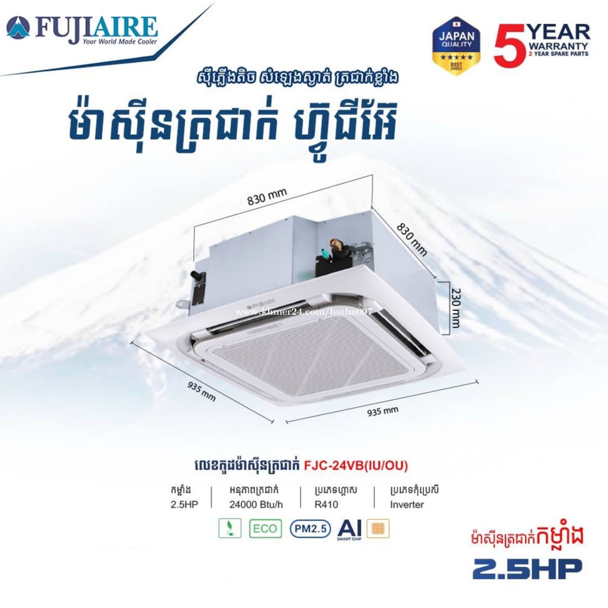 👉ចំនុចពិសេសៗ ដែលអតិថិជនគួរជ្រើសរើស ម៉ាសុីនត្រជាក់ Fujiaire ជប៉ុន https://youtu.be/R5plIUqihjk?si=sdUPwfh7CPdyT15Y 1/ Auto Clean (សម្អាតដោយស្វ័យប្រវត្ត) 2/ Ai system (ផ្តាច់ភ្លើងស្វយ័ប្រវត្តិនៅពេលមានបញ្ហា) 3/ R410 system ( ហ្គាសR410 ) 4/ មានការធានារយៈពេល 5 ឆ្នាំទៅលើ compressure ធានាពីរឆ្នាំទៅលើគ្រឿងបន្លាស់ ផ្លាស់ប្ដូរថ្មីបើមាន កំហូចឬបញ្ហាមុនរយៈពេលមួយឆ្នាំ. តម្លៃ : 2.5hp _ 830$ (non inverter) 5hp _1350$ 2.5hp _ 950$. (Inverter) 3hp_ 1280$ 4hp_ 1450$ 5hp_ 1540$ 6hp_ 1700$ ក្រុមហ៊ុននិងមានការដឹកជញ្ជូនដែលអាចគិតថ្លៃគ្រប់ខេត្តក្រុងទាំងអស់ក្នុងប្រទេស សូមអគុណ.