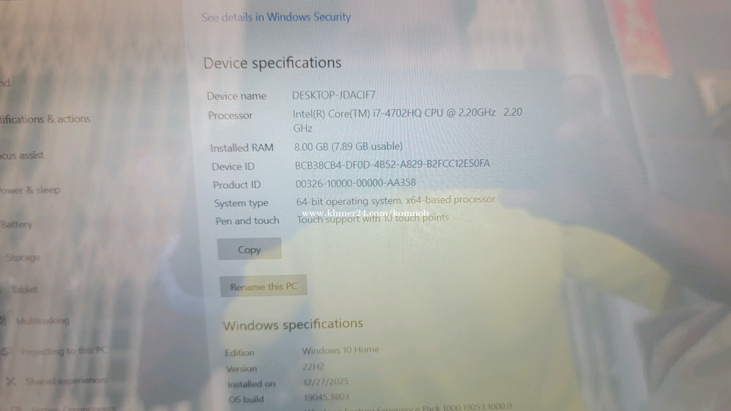 Laptop Clamshell White Intel® Core™ i7 i7-4702HQ 2.2 GHz . Processor cores: 4 Touchscreen Full HD . HDD1T. 8 GB DDR3L-SDRAM 2 x 4 GB 1 TB HDD Blu-Ray DVD Combo Intel® HD Graphics 4600 Ethernet LAN 10,100,1000 Mbit/s Bluetooth 4.0 Lithium-Ion (Li-Ion) 1h. តម្លៃ200$