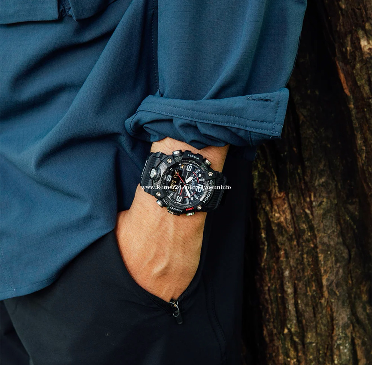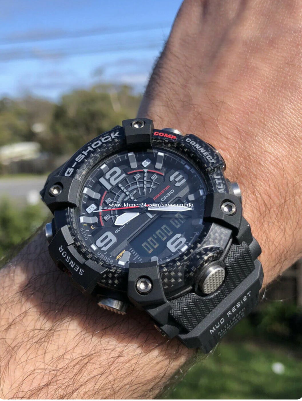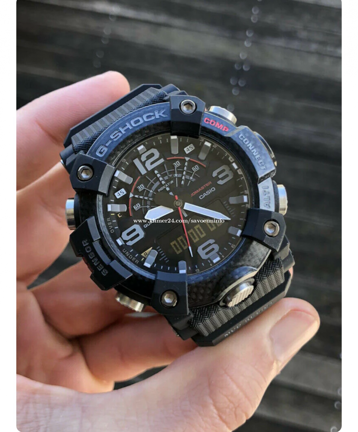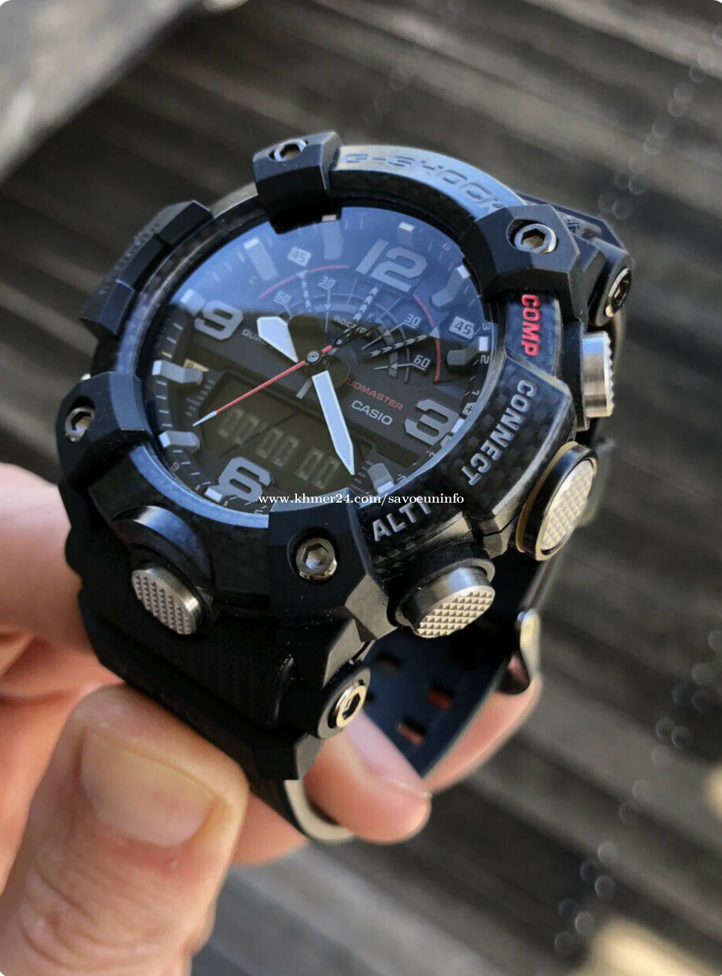 This is the latest model from MASTER OF G, the series of watches designed and engineered for use by those whose work takes them into environments scattered with rubble, dirt, and debris. - Case/ Bezel Material: Carbon/ Resin - Resin band - Neobrite - Mineral Glass - Carbon Core Guard structure - Mud Resistant - Shock Resistant - Spherical Glass - 200m Water Resistance - Mobile Link (wireless using Bluetooth) - Digital Compass - Altimeter - Barometer - Thermometer - Step Count using a 3-axis acceleration sensor: 0 to 999,999 step count display range - World time (38 time zones), daylight savings on/off, home city/ world time swapping - 1/100-Second Stopwatch - Countdown Timer - 5 Daily Alarms - Hand Shift Feature - Full Auto-calendar (to year 2099) - Size of case : 55.4 × 53.1 × 19.3mm ផលិតផលពីអូស្ត្រាលី Product from Australia ចាប់អារម្មណ៍សូមទំនាក់ទំនងតេលេក្រាម https://t.me/rumduol125