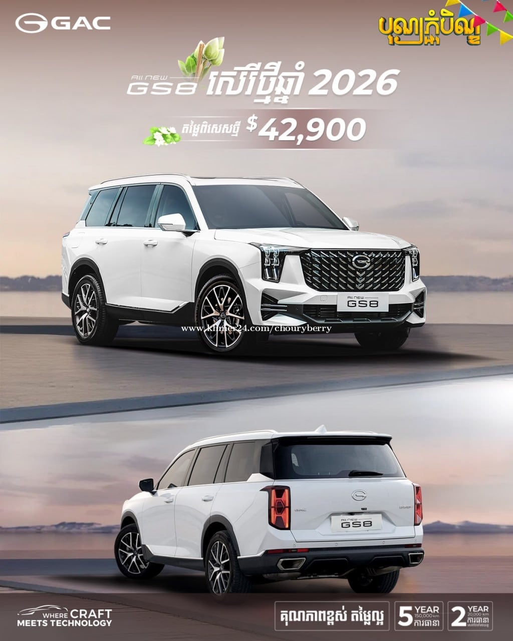 🎉 រថយន្ត GAC GS8 ទិញភ្លាម បានភ្លាម! រថយន្តមានស្តុកស្រាប់ 👉 រាល់ការទិញរថយន្តពីក្រុមហ៊ុន GAC Cambodia ដែលជាក្រុមហ៊ុនចែកចាយផ្លូវការតែមួយគត់នៅកម្ពុជា អតិថិជននឹងទទួលបានសន្តិភាពផ្លូវចិត្ត ព្រមទាំងអត្ថប្រយោជន៍ជាច្រើន៖ 1. ជារថយន្តប្រភេទ Global Version ងាយស្រួលប្រើប្រាស់ 2. ទទួលបានការធានារយៈពេលវែងរហូតដល់ 5ឆ្នាំ ឬ 150,000 គីឡូម៉ែត្រ ផ្លូវការពីរោងចក្រ GAC ប្រទេសចិន 3. ទទួលបានការប្រឹក្សា ថែទាំ និងជួសជុល ពីជាងជំនាញ ដែលបានបណ្តុះបណ្តាលពីរោងចក្រ GAC ប្រទេសចិន 4. ទទួលបានការអាប់ឌែតលើ Software តាមការកំណត់ និងទៀងទាត់ពីជាងជំនាញ 5. ទទួលបាននូវគ្រឿងបន្លាស់គុណភាពខ្ពស់ Original ពីរោងចក្រ GAC ។