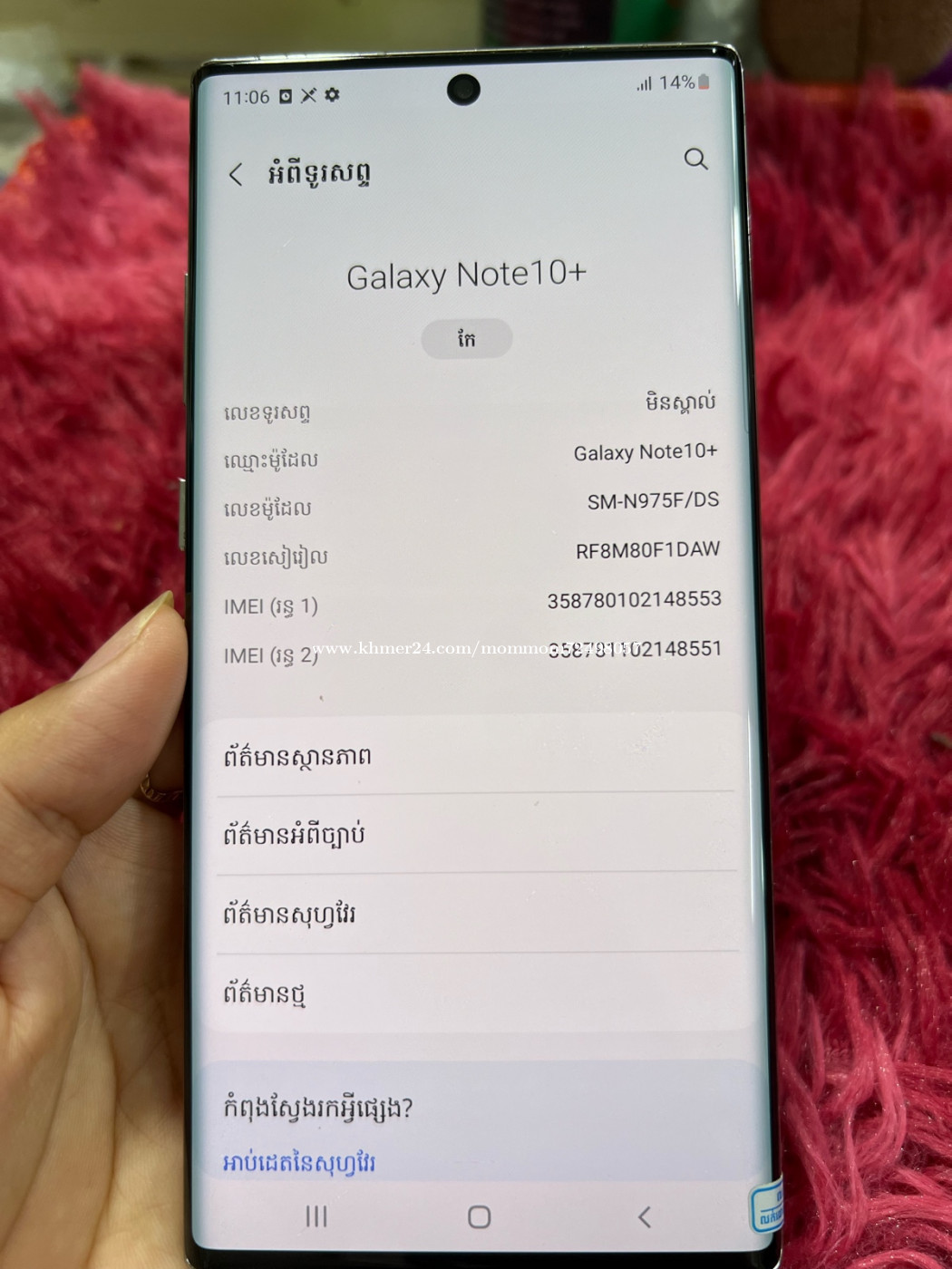 Galaxy Note 10+ Ram12/256 សុំណុំហ្សីន ស្អាត98%