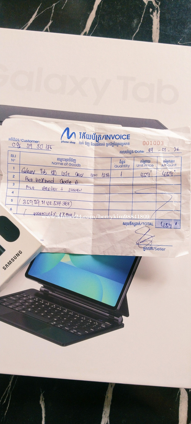 SAMSUNG Galaxy Tab S10 lite 5G ថ្មីទាំងប្រអប់ ទើបទិញ 07-01-2026 តែខុសតម្រូវការត្រូវទិញអាផ្សេងប្រើមួយវិញ ធានាថ្មី100% ទើបហែកប្រអប់អត់ទាន់បានប្រើទេ មានវិក័យប័ត្រទិញធានាបាន១ឆ្នាំទៀត មានប៊ិក keyboard Ram 6GB Storage 128GB ដាក់ស៊ីម និង memory បាន