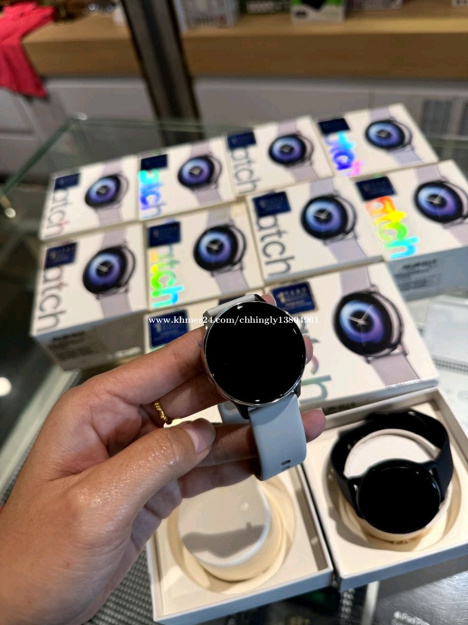 នាឡិកាឆ្លាតវៃរបស់Samsung Galaxy Watch Active តំលៃពេញ 2××$ បច្ចុប្បន្នបញ្ចុះសល់ 5×$ នៅថ្មី មានប្រអប់ ជាប្រភេទអីវ៉ាន់លាងស្តុកប្រញាប់ឡើង ចំនួនមាន កំណត់ ។