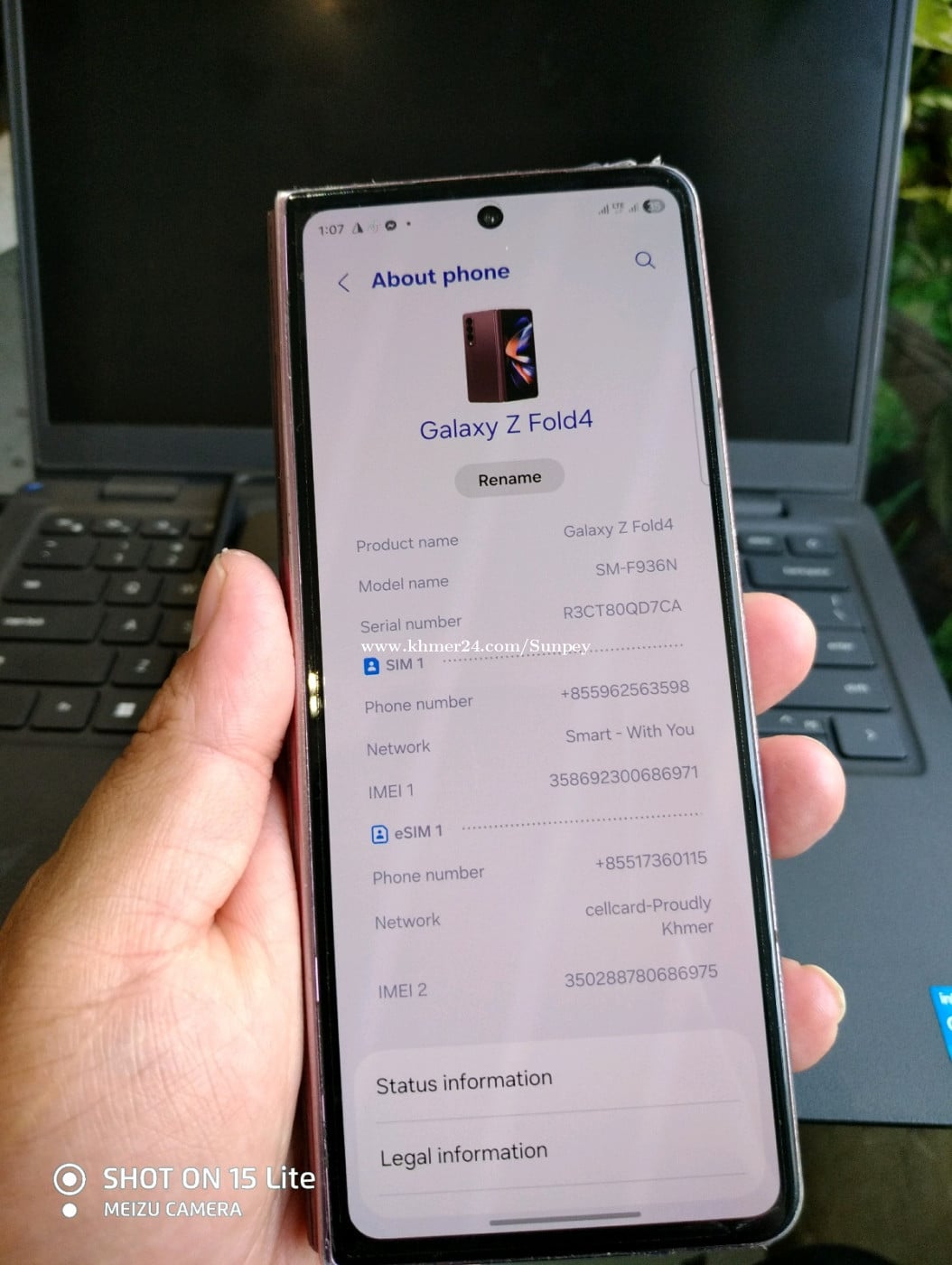 Galaxy Z Fold 4 សានុំសុីន អេក្រង់ស្អាតខ្ចី 98% ពណ៌ស្អាតកំរកមាន - អេក្រង់ស្អាត - ថ្មកាន់ - ធានាសានុំសុីន និង ធានាការប្រើប្រាស់មួយខែ Full Set