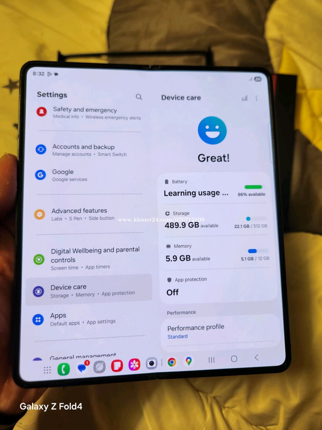 Galaxy Z Fold 4 5G ក្រុមហ៊ុន 512 អេក្រង់ស្អាតដូចថ្មី ការប្រើប្រាស់ល្អតាំងអស់ Full Set មានឆ្នាំងសាក 45W + Case + Screen protector