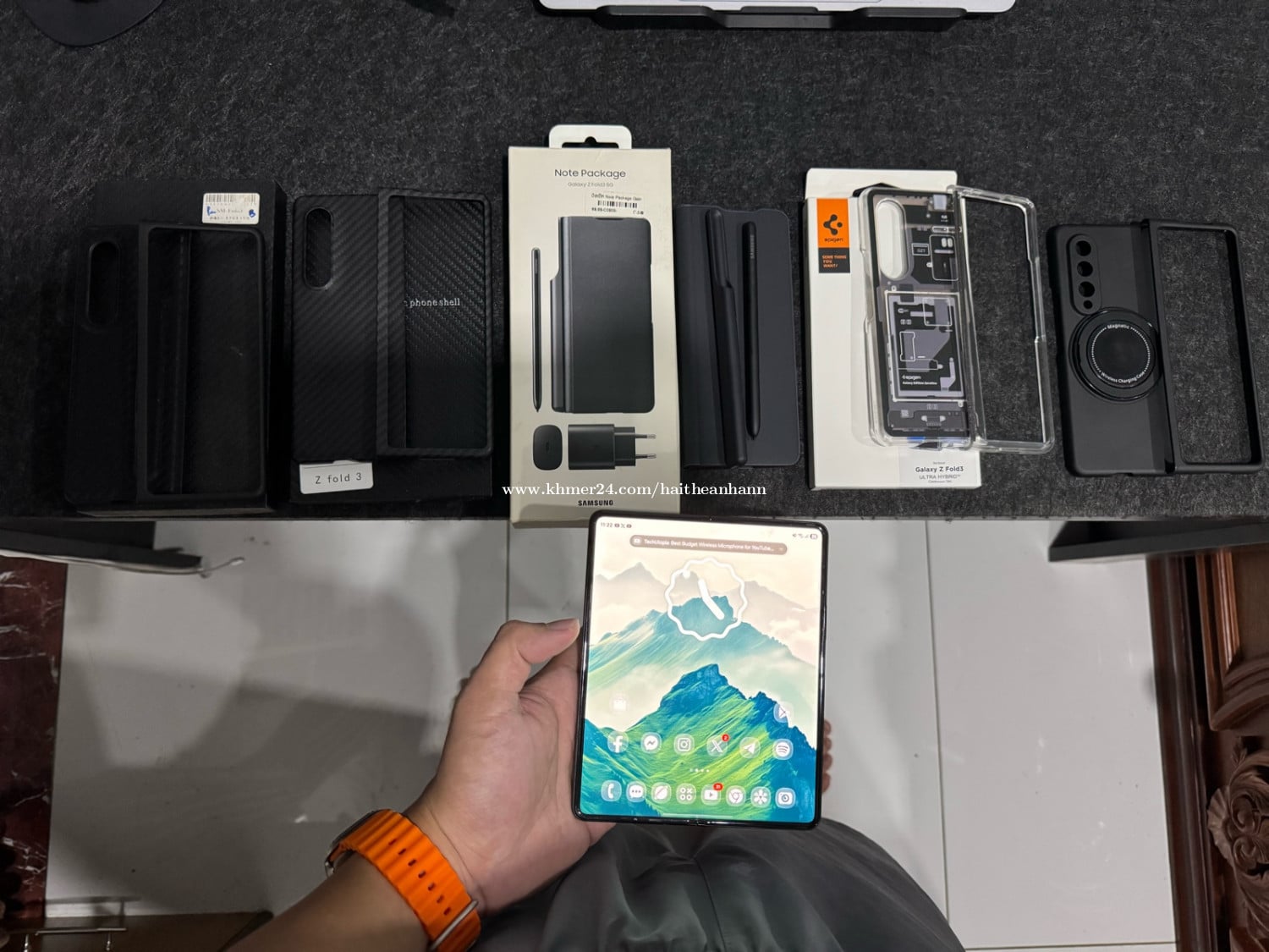 Z fold3 512GB Global Sim2 Esim zinទាំងអស់ តែស្ទើរតួបន្តិច Free 5 cases Free 1 Pencil Fold edition Free ខ្សែ original