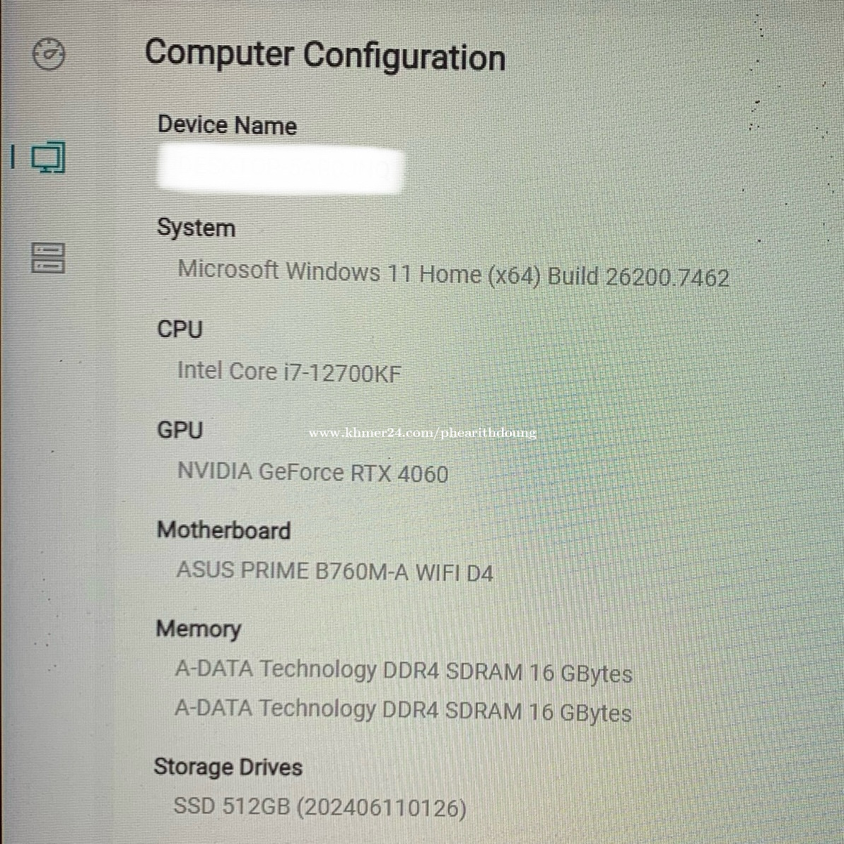 Intel Core i7-12700KF NVIDIA GeForce RTX 4060 8GB RAM DDR4 16GB x 2 = 32GB Storage SSD 512GB Monitor MSI-27 inch FHD IPS + Keyboard + Mouse Price: 850$