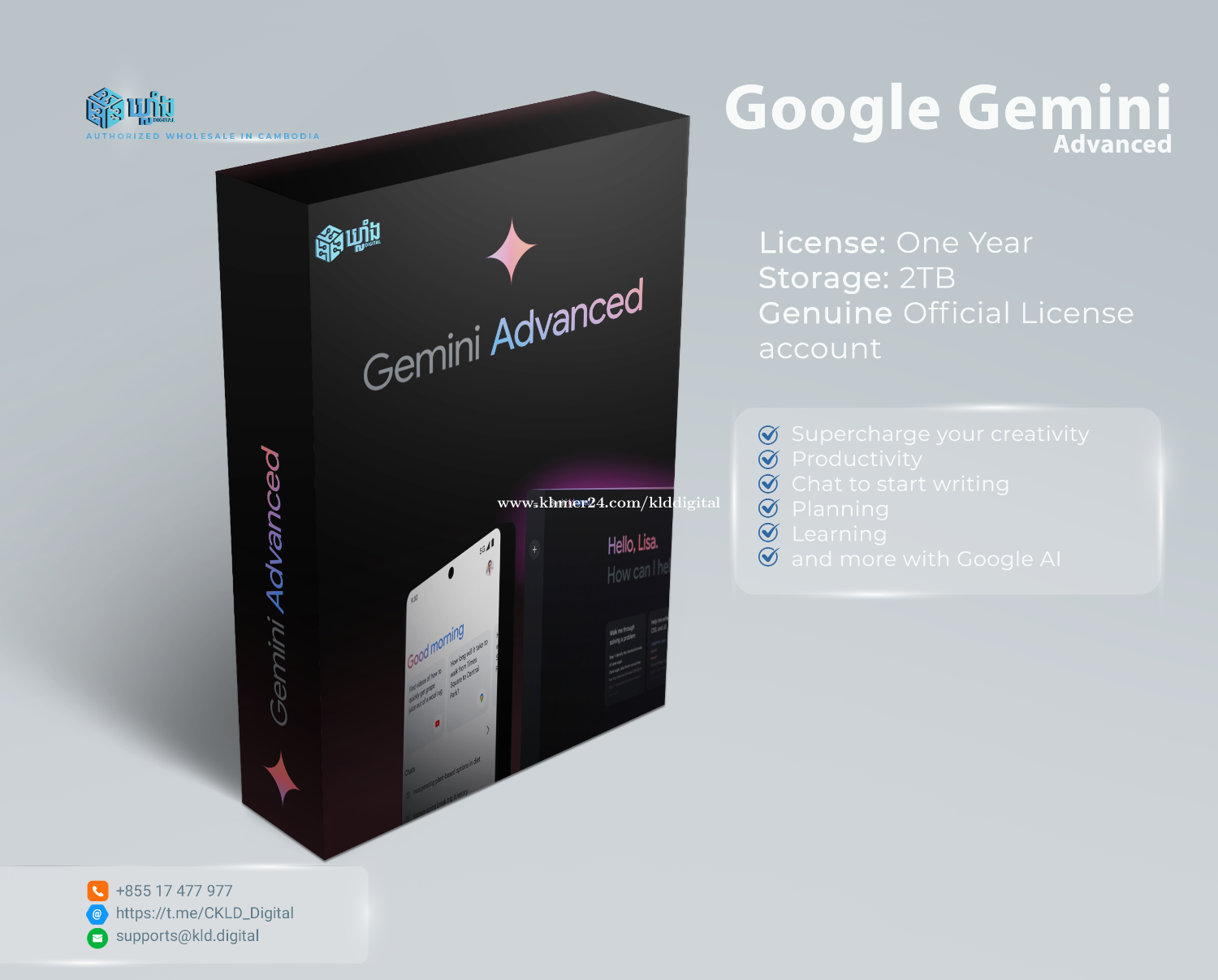 Google Gemini Advance Price: 30$/Year * Genuine Official License account * Cloude Storage 2TB AUTHORIZED WHOLESALE IN CAMBODIA Contact: https://t.me/GKLD_Digital Channel: https://t.me/CKLD_Digital Facebook Page: www.facebook.com/kld.digitals Website: https://KLD.Digital Become retail email: sup*****@kld.digClick To Sent Emailital