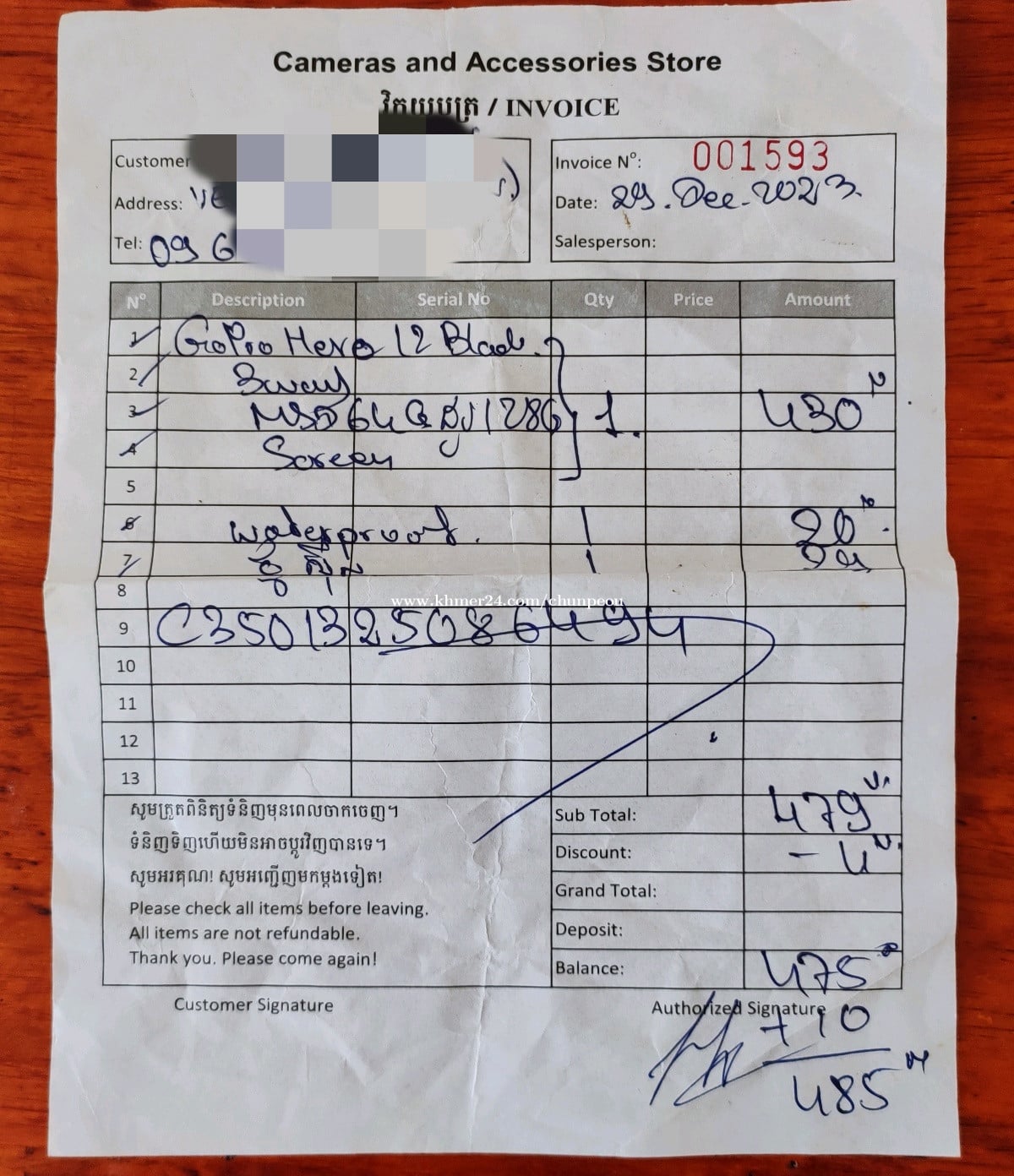 លក់Gopro 12 នៅដូចថ្មីព្រោះអត់មានពេលប្រើ កាលទិញ485ដុល្លារ តម្លៃដូចក្នុងវិក័យប័ត្រ និង មានទិញ Accessថែមជិត100 ដុល្លារទៀត - GoPro 12 hero black មានទាំងប្រអប់ - Memory 138 G - Original battery = ចំនួន ១គ្រាប់ និងថែម១គ្រាប់ទៀត - ថែមCase ការពារ ១ - ថែមCase waterproof ចំនួន១ - ថែមឆ្នាំសាកថ្ម អាចសាកបានម្ដង៣គ្រាប់ចំនួន ១ - ថែមដងថតសែលហ្វី ចំនួន១ - ថែមខ្សែពាក់ករ Telfsin ចំនួន១ - និងមានថែមជូនគ្រឿន Accessories ជាច្រើនទាំងអស់ដូចក្នងរូបនេះសរុបតម្លៃជិត១០០ដុល្លារ ទិញទៅមានគ្រឿងប្រើគ្រប់តែម្ដង Telegram 0977110xxxClick To Call