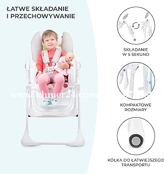 Kinderkraft Yummy, Highchair, Baby Chair, Ergonomic, Comfortable, Reclining, Foldable, with Ajustable Height, Footrest, Detachable Double Tray,