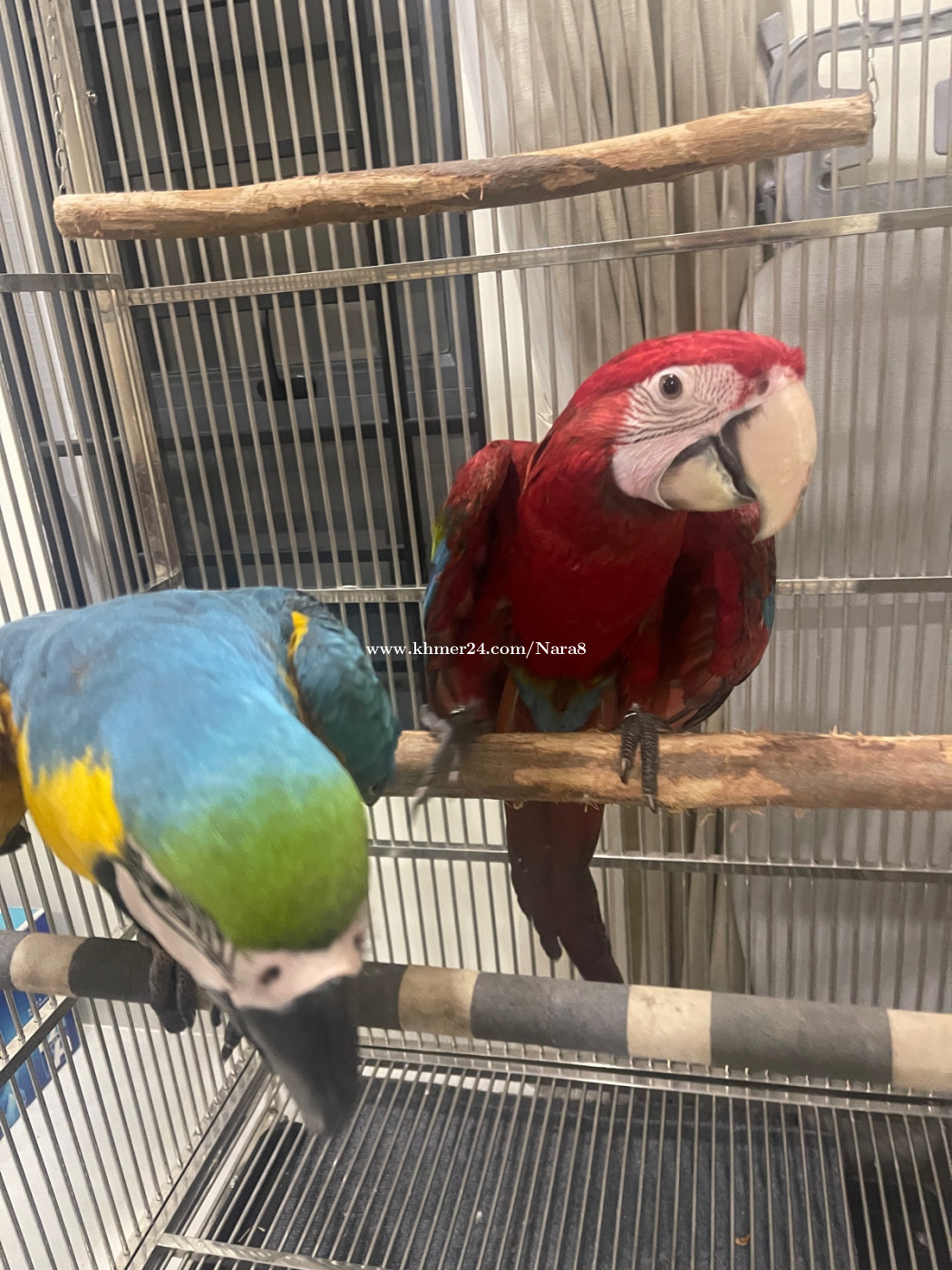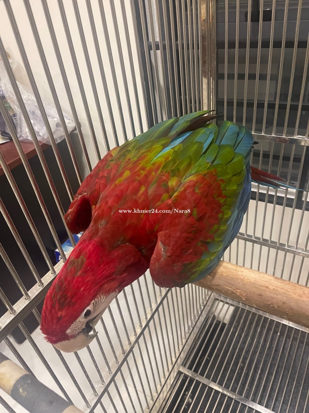Green wing macaw ភេទ ញី free fly បានអាយុ 6ខែ មាធធំ