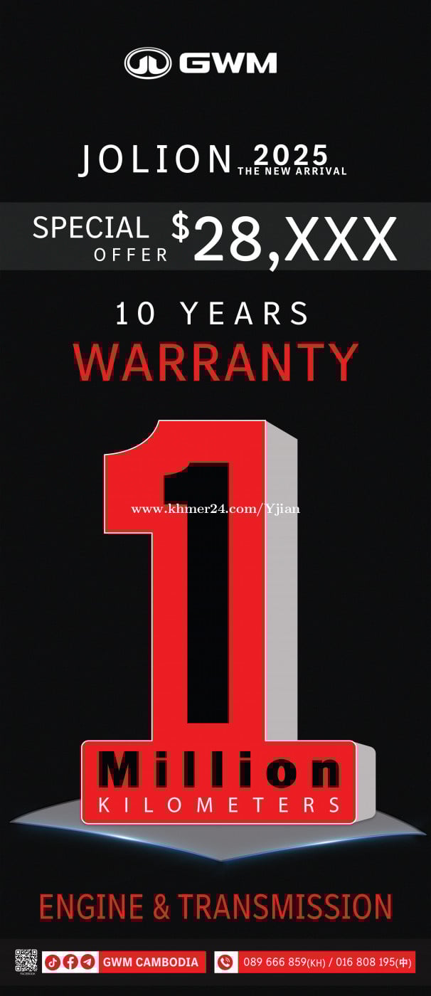 The GWM JOLION is available at the Cambodia Great Wall showroom, which provides comprehensive car purchase services and after-sales repair warranty. The vehicle's engine and transmission are covered by the Great Wall manufacturer's 10-year/1,000,000-kilometer warranty. 柬埔寨第一款也是唯一款提供厂家10年/100万公里车辆发动机,变速箱质保! 长城JOLION,柬埔寨长城4S店为您提供全面的购车服务以及售后维修质保! 中国客户请联系:016808xxxClick To Call(中)