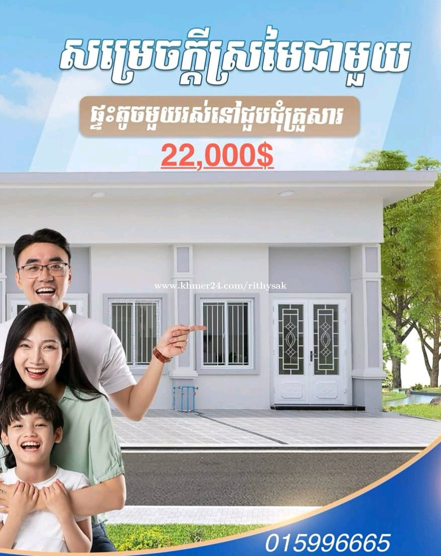 ផ្ទះបុរីសំរាប់គ្រួសារវ័យក្មេង នៅប៉ែកខាងគៀនស្វាយ ស្ថាបនិក ឧកញ៉ា បណ្ឌិត គីម ហ៊ាង។ ២បន្ទប់គេង, ១បន្ទប់ទឹក, ទំហំផ្ទះ 4.2mx11.5m ទំហំដី4.2mx16m សល់ខាងមុខ4.5m