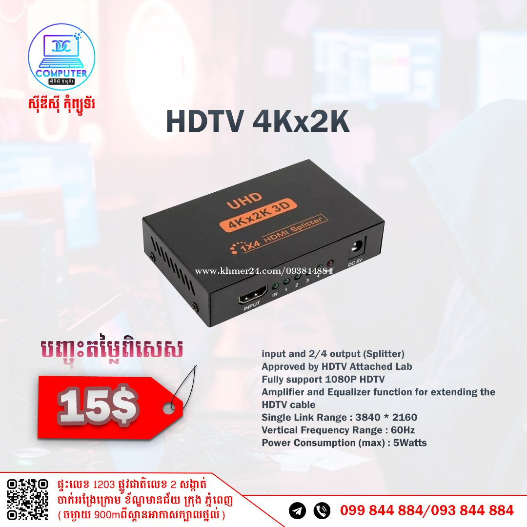 HDMI Switch Input 1 Output 4 New in box 100% Price 15$ CDC COMPUTER 🖥 ☎️ ទូរស័ព្ទលេខ : 093844xxxClick To Call / 099844xxxClick To Call Telegram : t.me/CDCCOMPUTER093 🏠 ទីតាំងហាង : ផ្ទះលេខ 1203 ផ្លូវជាតិលេខ2 ចាក់អង្រែលើ ខ័ណ្ឌមានជ័យ ភ្នំពេញ (ចំងាយពីស្ពានអាកាសក្បាលថ្នល់ 900ម៉ែត្រ) 📍 Google map : https://maps.app.goo.gl/R3W9thPP5omgsMaZA