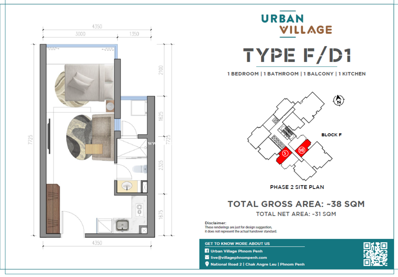 High Floor Studio Unit for Sale Below Market Price in Urban Village - Selling Price: 48,000$ - Net Size: 31sqm, Gross Size: 38sqm - 50th floor - 10 minutes to Aeon Mall 3 and 25 minutes to Techo International Airport - Coffee shop, restaurant, Spa, Salon, Aeon Max Valu good for residential use or investment. - Location: 60M Road, Sangkat Chak Angrae Leu, Khan Mean Chey, Phnom Penh - Contact: 010460xxxClick To Call - Telegram Link: https://t.me/sao_so_pheak