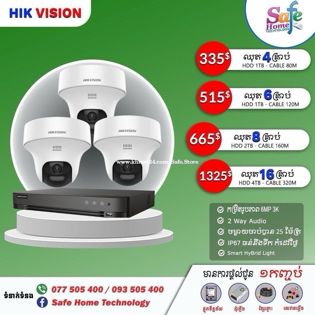 HIKVISION 2mp -25m ឈុត ៤គ្រាប់ = 185$ ឈុត ៦គ្រាប់ = 255$ ឈុត ៨គ្រាប់ = 315$ ឈុត ១៦គ្រាប់ = 665$ Telegram : https://t.me/safehometechnology https://t.me/safehomestore