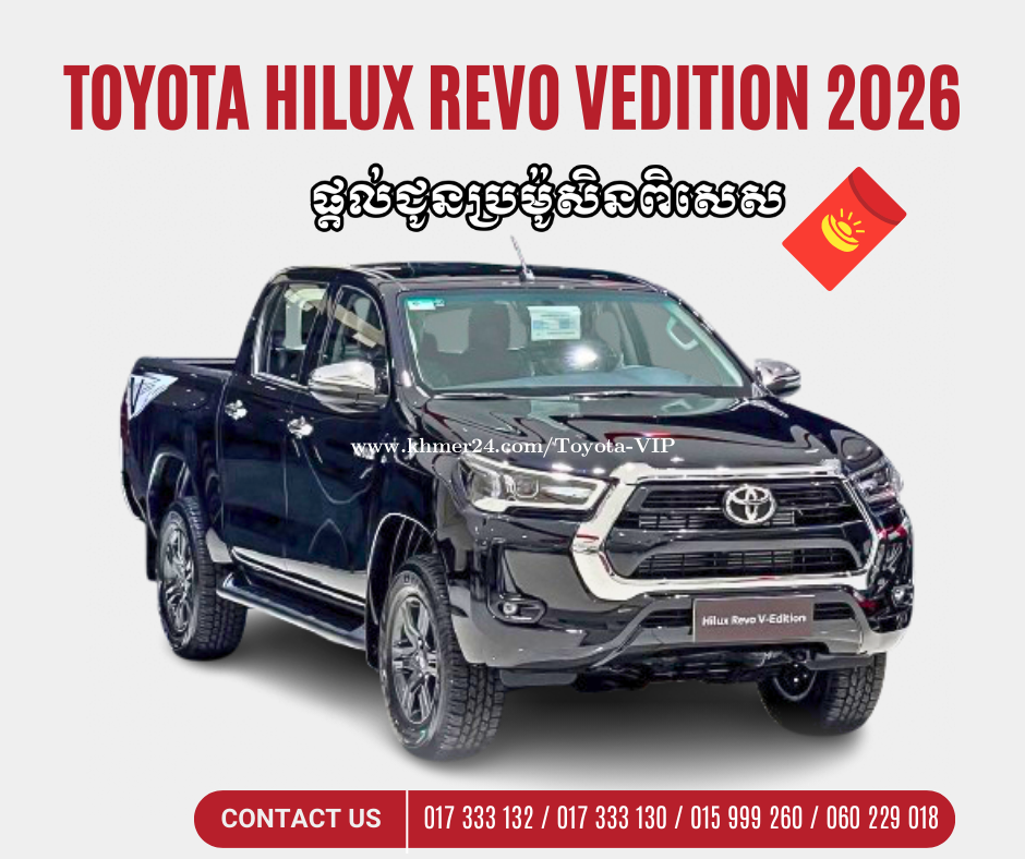 ✨𝐇𝐢𝐥𝐮𝐱 𝐑𝐞𝐯𝐨 𝐕-𝐄𝐝𝐢𝐭𝐢𝐨𝐧 𝟐𝟎𝟐𝟓 ✨ 🎉តម្លៃរឹតតែល្អ $𝟒𝟎,𝟗𝟎𝟎 សម្រាប់ប្រម៉ូសិននៅក្នុងខែនេះ អតិថិជននឹងទទួលបាន 🔹ការចាប់អាំងប៉ាវដែលមានទឹកប្រាក់ចាប់ពី 𝟐𝟔𝟖$ ដល់ 𝟓𝟔𝟖$ 🔹ហ្វ្រីដឹកជូនដល់ទីតាំង 🔹ទទួលបានគូប៉ុង 𝟓𝟎𝟎$ សម្រាប់ការវៃដូស៊េរី ប្រើប្រាស់បានគ្រប់ស្ថានភាពផ្លូវ សន្សំសំចៃប្រេង ទំនើបធន់ងាយថែទាំ៖ ✅ ម៉ាស៊ីនជំនាន់ថ្មី : 2.8L Turbo ✅ ប្រអប់លេខអូតូ +លេខដៃ 6វគ្គ ✅ បែងចែកកំលាំង Eco Mode, Normal Mode, Power Mode ✅ អូតូកាពីតាស (Shift on The Fly) ភ្ជាប់ប៉ុងដោយមិនឈប់រថយន្ត ✅ មុខងារភ្ជាប់ប៉ុងក្រោយ (Rear Differential Lock) ✅ សេនស័រមុខក្រោយ និងកាម៉េរាក្រោយ ✅ មុខងារមើលផែនទីស្រុកខ្មែរ ✅ សោរស្មាតឃី (ចុចប៊ូតុងដេរ និងពន្លត់) ✅ ភ្លើងអូតូ ប្រភេទភ្លើង LED ✅ មានទូត្រជាក់ ដាក់ភេសជ្ជៈ ✅ ម៉ាស៊ីនត្រជាក់អូតូ មុខ_ក្រោយ ✅ កំពស់បាតរថយន្តពីដីខ្ពស់ 310mm សម្រាប់ព័ត៌មានលម្អិត សូមទំនាក់ទំនងផ្នែកលក់រថយន្ត៖ ☎️ 017333xxxClick To Call / 017333xxxClick To Call (𝐂𝐞𝐥𝐜𝐚𝐫𝐝) ☎️015999xxxClick To Call (𝐒𝐦𝐚𝐫𝐭) ☎️060229xxxClick To Call (𝐌𝐞𝐭𝐟𝐨𝐧𝐞) 👉 𝐓𝐞𝐥𝐞𝐠𝐫𝐚𝐦 𝐂𝐡𝐚𝐧𝐧𝐞𝐥:https://t.me/toyota_aws 👉 KH24 : https://www.khmer24.com/Toyota-VIP 👉 𝗪𝗲𝗯𝘀𝗶𝘁𝗲 : https://www.toyota.com.kh/en.html