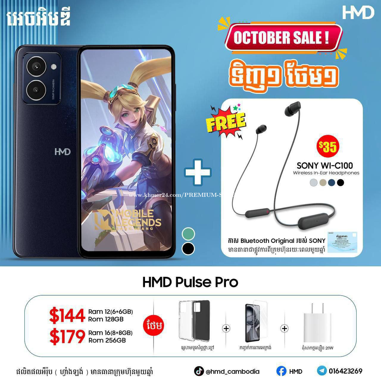 HMD Pulse Pro ជាស្មាតហ្វូនថ្មីមួយពីក្រុមហ៊ុន HMD (ក្រុមហ៊ុនដែលធ្លាប់ផលិត Nokia)។ វាមានលក្ខណៈសម្បត្តិដូចជា៖ 🖥 អេក្រង់៖ ប្រហែល6.56" (HD+, 1612×720) មាន90Hz refresh rate ⚙️ ប្រព័ន្ធបញ្ជា (CPU)៖ Unisoc T606 (octa-core, 12 nm) 💾 RAM / Storage៖ 4GB–8GB RAM និង 128GB–256GB ROM, មានរន្ធដាក់ microSD 📸 កាមេរ៉ាខាងក្រោយ៖ 50 MP + 2 MP depth sensor កាមេរ៉ាខាងមុខ៖ 50 MP (selfie) 🔋 ថ្ម៖ 5000 mAh, សាកលឿន 20W (ប្រើបានប្រហែល 1–2 ថ្ងៃ) 🔐 សុវត្ថិភាព៖ មានស្កេនម្រាមដៃនៅចំហៀង 🎧 មាន Jack 3.5mm, NFC, USB-C 💧 ការពារទឹក/ធូលី៖ IP52 (ជាប្រភេទ splash-proof) 🧩 ប្រព័ន្ធប្រតិបត្តិការ៖ Android 14 មានការអាប់ដេត OS 2ឆ្នាំ និងសុវត្ថិភាព 3ឆ្នាំ ✅ ហ្គេមដែលអាចរត់បានល្អ HMD Pulse Pro ប្រើ CPU Unisoc T606 និង GPU Mali-G57 MP1។ Mobile Legends: Minecraft / Roblox: Asphalt 8 / Asphalt Nitro Subway Surfers / Free Fire Telegram 017555xxxClick To Call