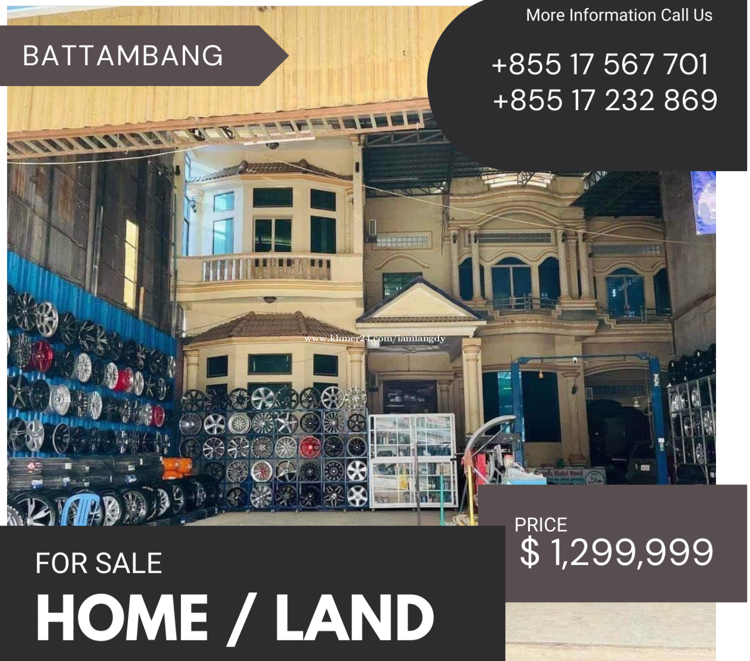 ផ្ទះលក់ ទំហំ ៤៦៨ម២ មានប្លង់រឹងត្រឹមត្រូវ ងាយស្រួលរស់នៅ ប្រកបអាជីវកម្ម បើកជាក្រុមហ៊ុន ឃ្លាំង មានទីតាំងល្អខ្លាំង ជាប់ផ្លូវជាតិលេខ៥ ជិតស្ពានថ្ម ភូមិរតនៈ សង្កាត់រតនៈ ក្រុងបាត់ដំបង ខេត្តបាត់ដំបង តម្លៃចចារ $ 1,299,999 Telephone: 017567xxxClick To Call, 017232xxxClick To Call