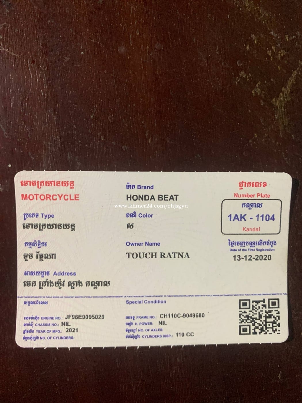 honda beat 021 មានពន្ធកាតគ្រីត្រឹមត្រូវ ម៉ាស៊ីនតាន់ លក់1430$ ទិញដាច់ វ៉ៃដូរ បង់រំលស់បាន 📝 ពត៌មានបន្ថែមអាចឆាតសួរបានបងប្អូន 🛣️ទីតាំង ខណ្ឌកំបូល រាជធានីភ្នំពេញ 📥groups https://t.melyratanakmodernmotobike 💌Telegram http://t.me/lyratanak168 ☎️(metfone) 0888131xxxClick To Call ☎️(smart) 016985xxxClick To Call ☎️(Cellcard) 085985xxxClick To Call